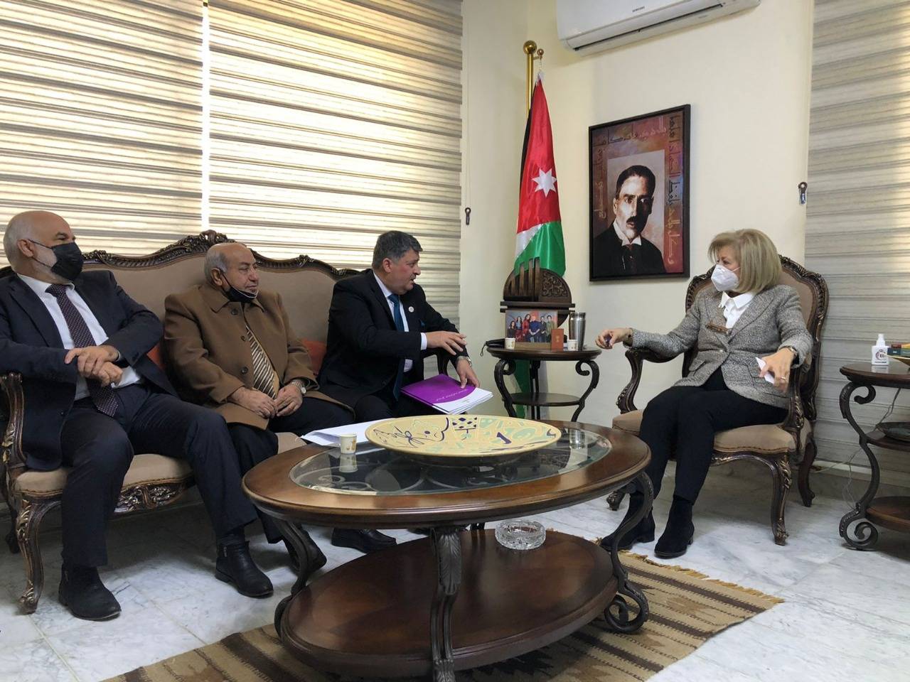 ودار حوار بنَاء بين النجار واعضاء الوفد الذين أشادوا بجهود وزارة الثقافة ودائرة المكتبة الوطنية في مجال حفظ وتوثيق تاريخ الأردن ونشره والتوعية به.