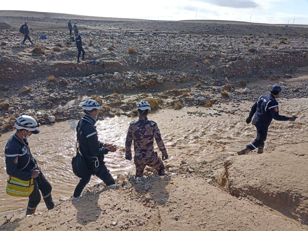وأكد ان فرق الدفاع المدني المتخصصة وبمساندة من شرطة معان وقوات الدرك مستمرة بعمليات البحث والتمشيط في مناطق متعددة على امتداد مجرى السيل ، ولا تزال عمليات البحث جارية منذ الامس.