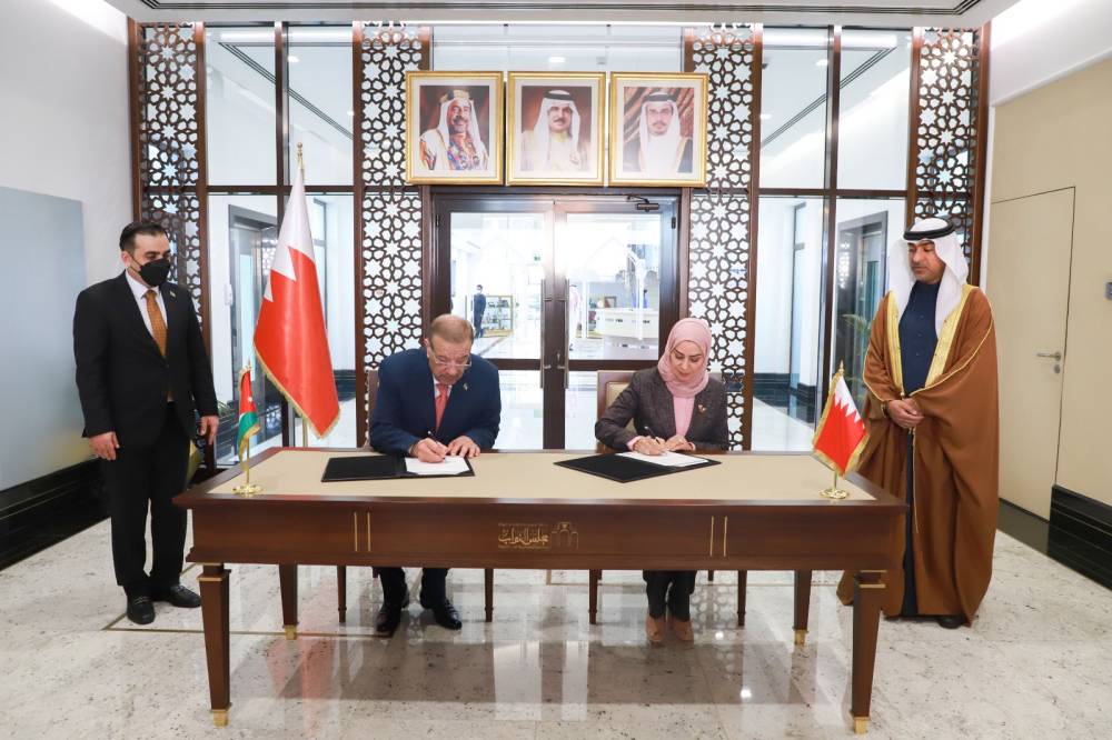 وعقب المباحثات وقع الدغمي ورئيسة البرلمان البحريني مذكرة تفاهم انطلاقا من سعي مجلسي النواب الأردني والبحريني إلى زيادة التعاون المؤسسي على المستوى البرلماني للدفع قدماً بشراكة برلمانية فاعلة، تعكس التفاهم المشترك والتعاون المتبادل، وتقوم على توسعة أطر العمل المشترك، وتنمية التقارب على كافة الأصعدة، ارتكازا على المبادئ المشتركة، والقيم والتقاليد التاريخية التي تجمع البلدين والشعبين الشقيقين، كما يعمل الطرفان على تبادل الوفود البرلمانية بينهما بغية الإطلاع على التجارب والأنشطة البرلمانية لكليهما وتبادل الخبرات.