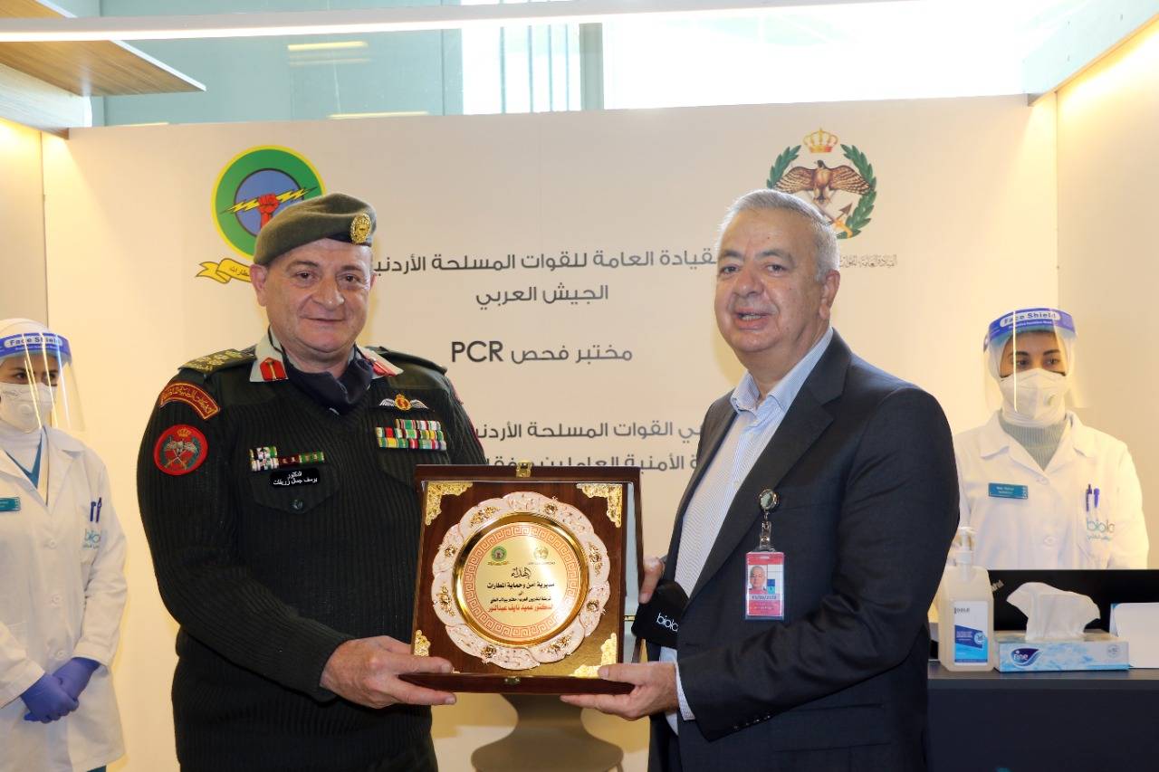 نيروز الإخبارية : تنفيذًا لتوجيهات رئيس هيئة الأركان المشتركة، افتتح مدير عام الخدمات الطبية الملكية العميد الطبيب يوسف زريقات الإثنين، محطة فحص (PCR) خاصة "برفاق السلاح” في مطار الملكة علياء الدولي، بهدف تقديم الرعاية لمرتبات القوات المسلحة والأجهزة الأمنية العاملين والمتقاعدين والاهتمام بهم وتوفير الوقت والجهد عليهم، بحضور مدير أمن وحماية المطارات العميد الركن عوض الطهاروة.