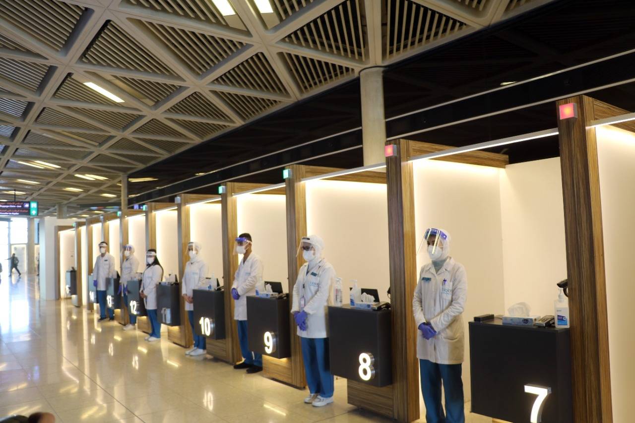 وتشمل محطة الفحص (BOOTH) عدد 2، لإجراء الفحص للمسافرين القادمين من العسكريين والوفود العسكرية من الدول الشقيقة والصديقة، بإشراف مديرية أمن وحماية المطارات وبالتعاون مع إدارة مختبر بيولاب، وتم تصميم شعار يعكس مدى اهتمام القيادة العامة بمرتباتها عاملين ومتقاعدين (رفاق السلاح)، ممن تنطبق عليهم شروط إجراء الفحص وبمتابعة من مركز طبي أمن وحماية المطارات.