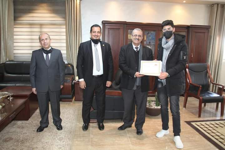 وتأتي الزيارة   لتسليم رئيس الجامعة درع الرعاية، وشهادات المشاركة للطلبة الذين كانوا ضمن المنافسة في المسابقة .