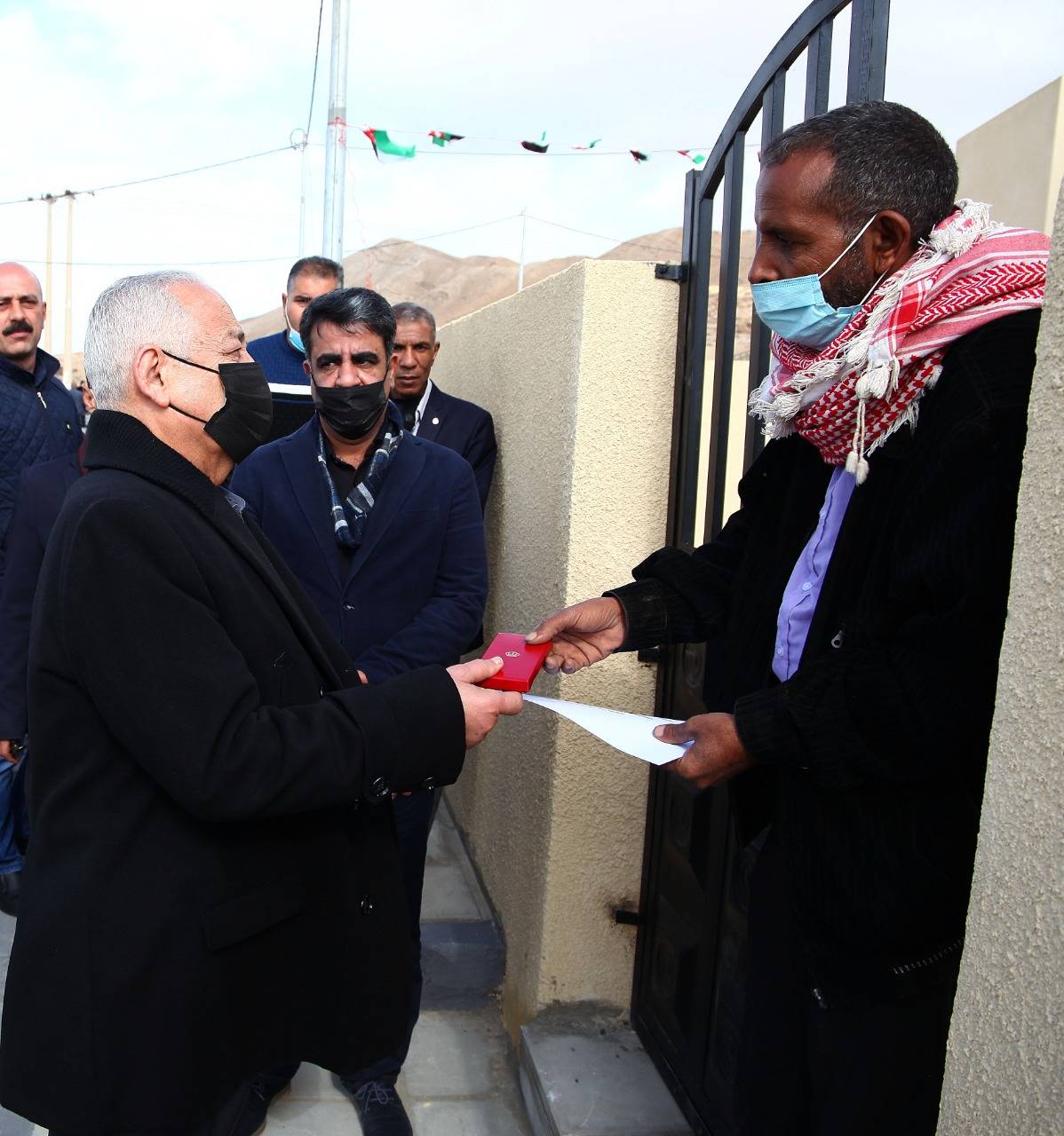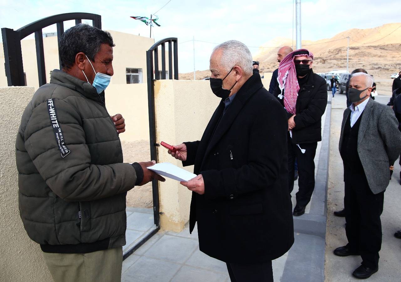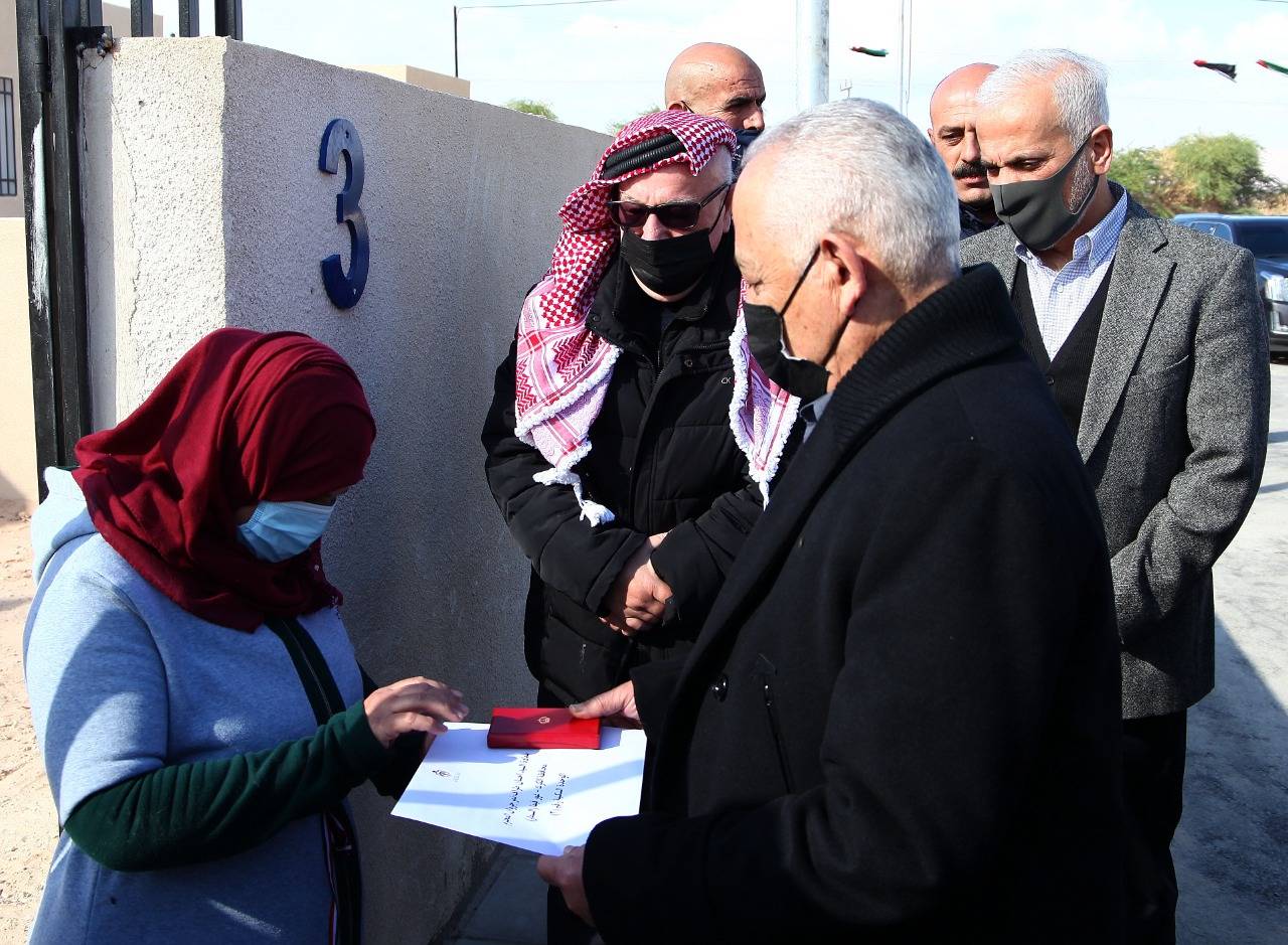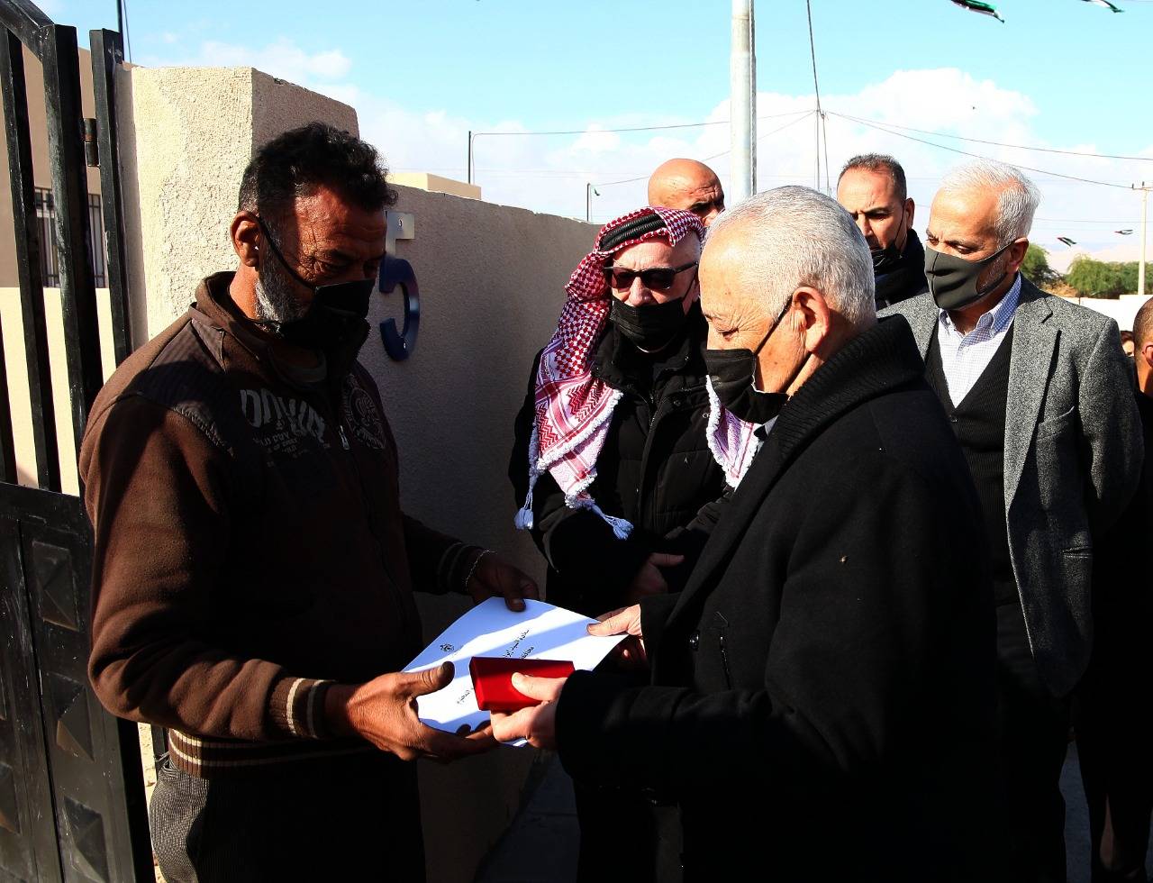 وسلّم رئيس الديوان الملكي الهاشمي، رئيس لجنة متابعة تنفيذ مبادرات جلالة الملك، يوسف حسن العيسوي، بحضور وزيري الأشغال العامة والإسكان المهندس يحيى الكسبي، والتنمية الاجتماعية أيمن المفلح، ومحافظ الكرك الدكتور محمد الفايز، مفاتيح (10) مساكن جديدة لأسر مستفيدة في منطقة غور السمار، ومفاتيح (5) مساكن لأسر مستفيدة في منطقة غور حديثة، بمحافظة الكرك، حيث صُمّمت المساكن وفقاً لأعلى المواصفات الهندسية والفنية.