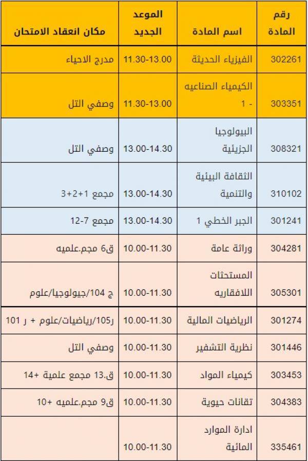 مادة مدخل الى التربية، ليصبح الساعة 11:45 صباحا بدلا من الساعة 11:30 صباحا