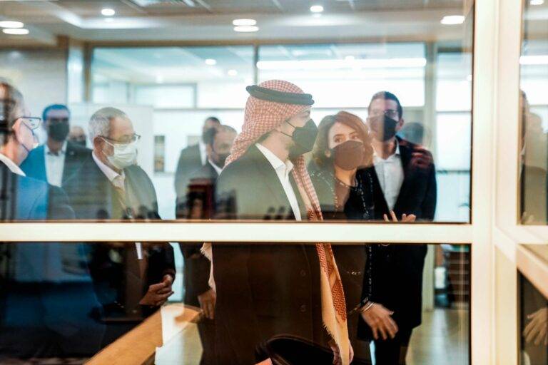 واطلع سمو ولي العهد، خلال جولة، رافقته فيها سمو الأميرة ريم، على مختلف مرافق المعهد الذي يضم قاعات للتدريس والأخبار، واستديوهات إذاعية وتلفزيونية، ومكتبة ومرافق مخصصة للتدريب.