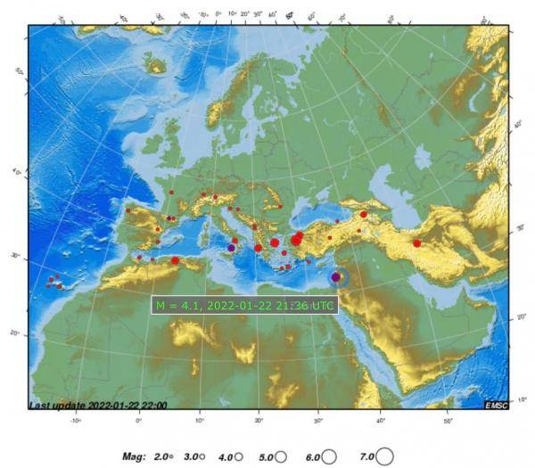 وأضاف أن هزة ارضية بقوة 4.1 ضربت على مسافة 14 كم شمال بيسان و32 كم الى الغرب من إربد الساعة 23:36 وتم الشعور بها بحسب بيانات مركز دراسات زلازل اوروبا والبحر المتوسط بفرنسا.
