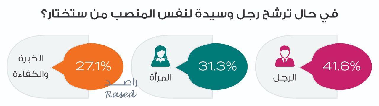وتضمنت الدراسة سؤالاً حول إذا ما ترشح رجل وسيدة لذات المنصب فما هي توجهات الناخبين والناخبات، حيث بينت النتائج أن 41,6% من الأردنيات والأردنيين سيصوتون للرجل، بينما قال ما نسبته 31,3% من الأردنيات والأردنيين أنهم سيصوتون للمرأة، فيما قال 27,1% أن الكفاءة والخبرة هي معيار الاختيار.