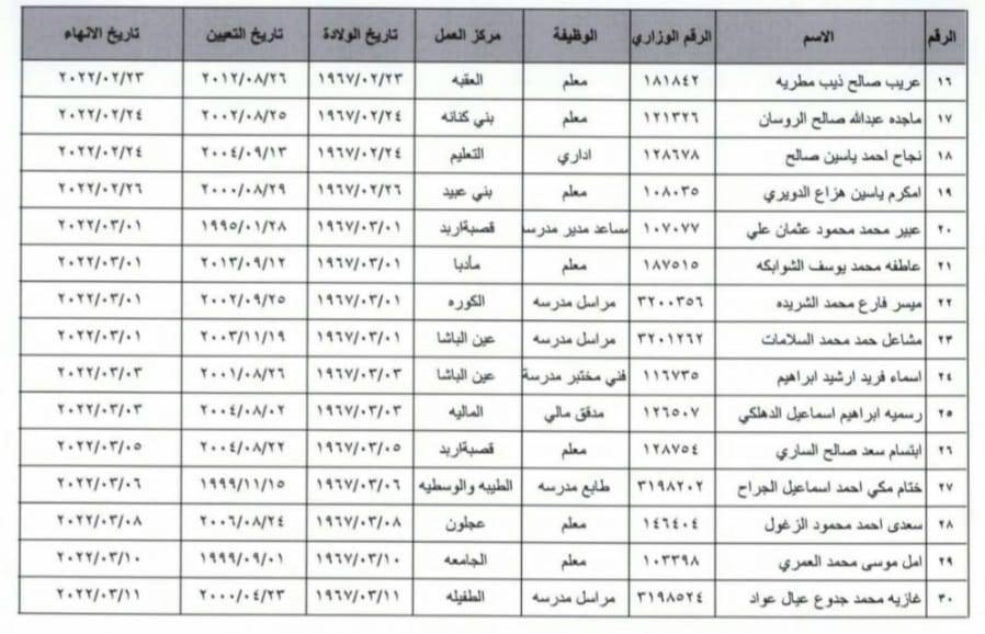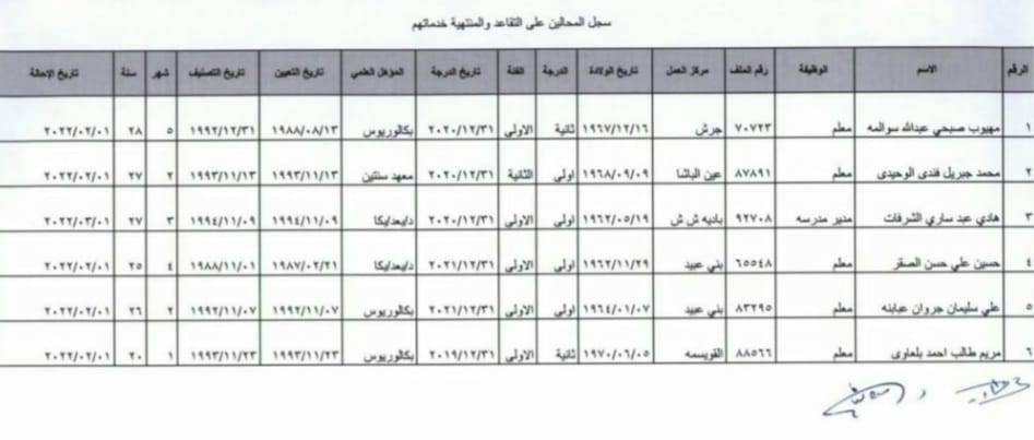 : قرر مجلس الوزراء بالموافقة على إحالة مجموعة من الموظفين في وزارة التربية والتعليم إلى التقاعد.