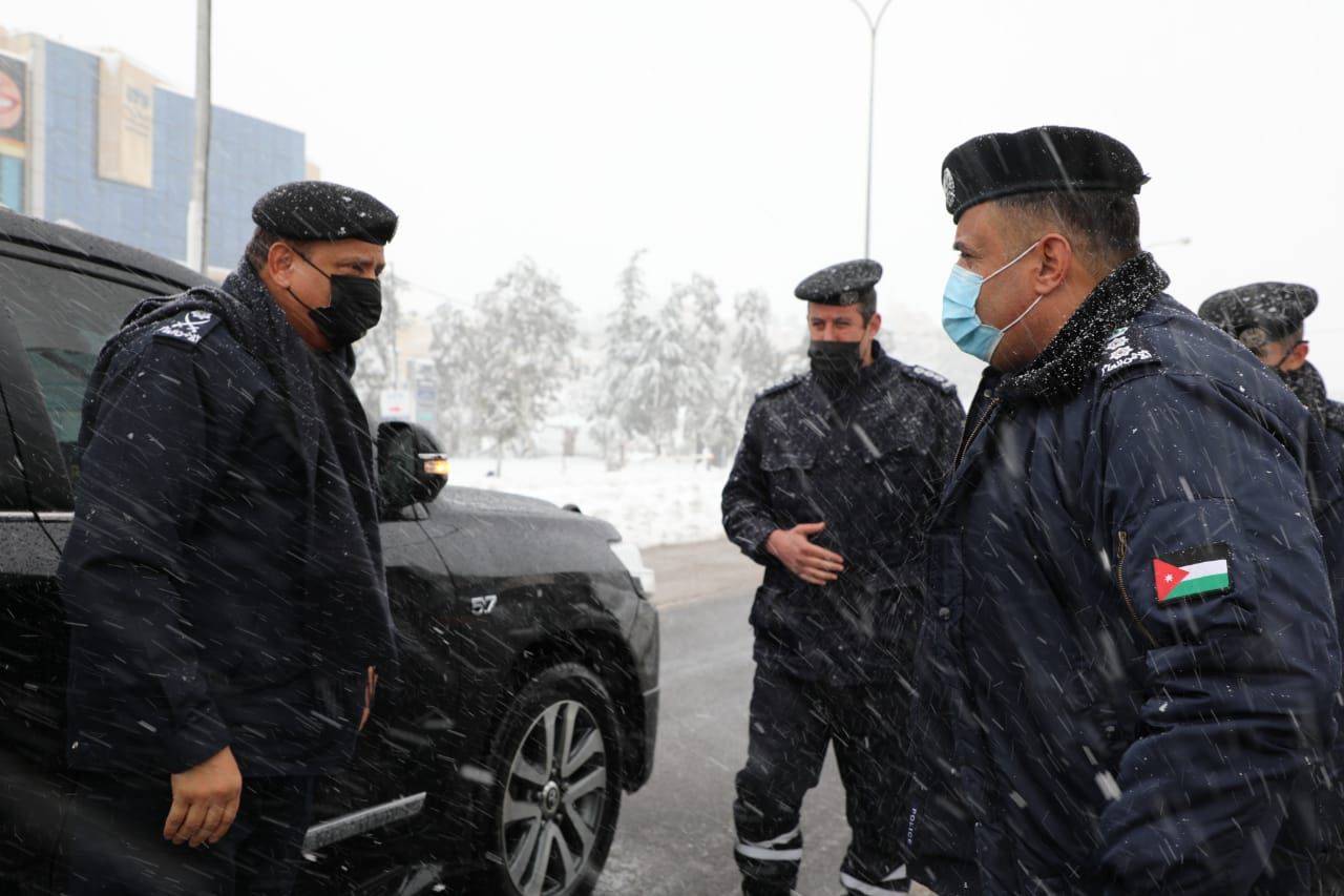 قام مدير الأمن العام حسين الحواتمة بتفقد منتسبي مديرية الأمن الأمن العام الذين يقومون على إزالة الثلوج من الطرقات و الحفاظ على أمن وأمان الوطن في ظل الظروف الجوية السائدة التي تشهدها المملكة .