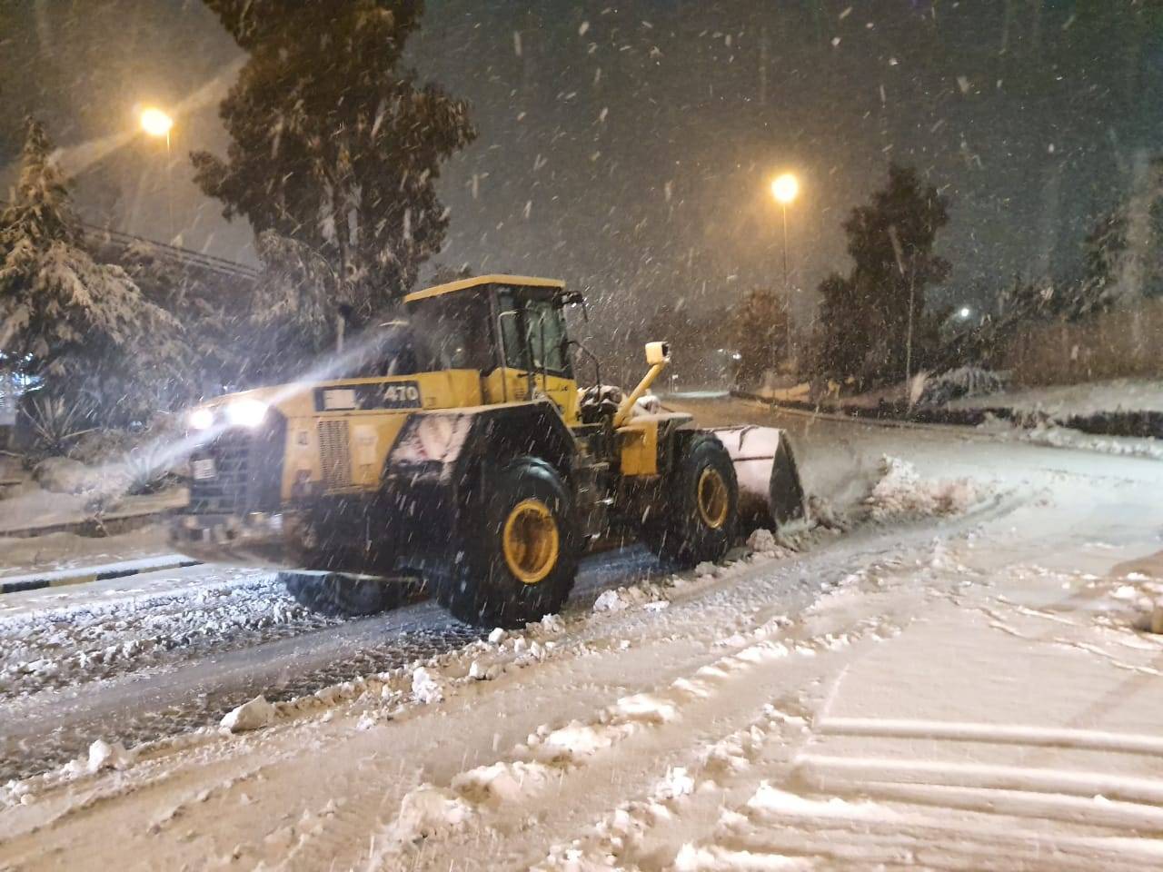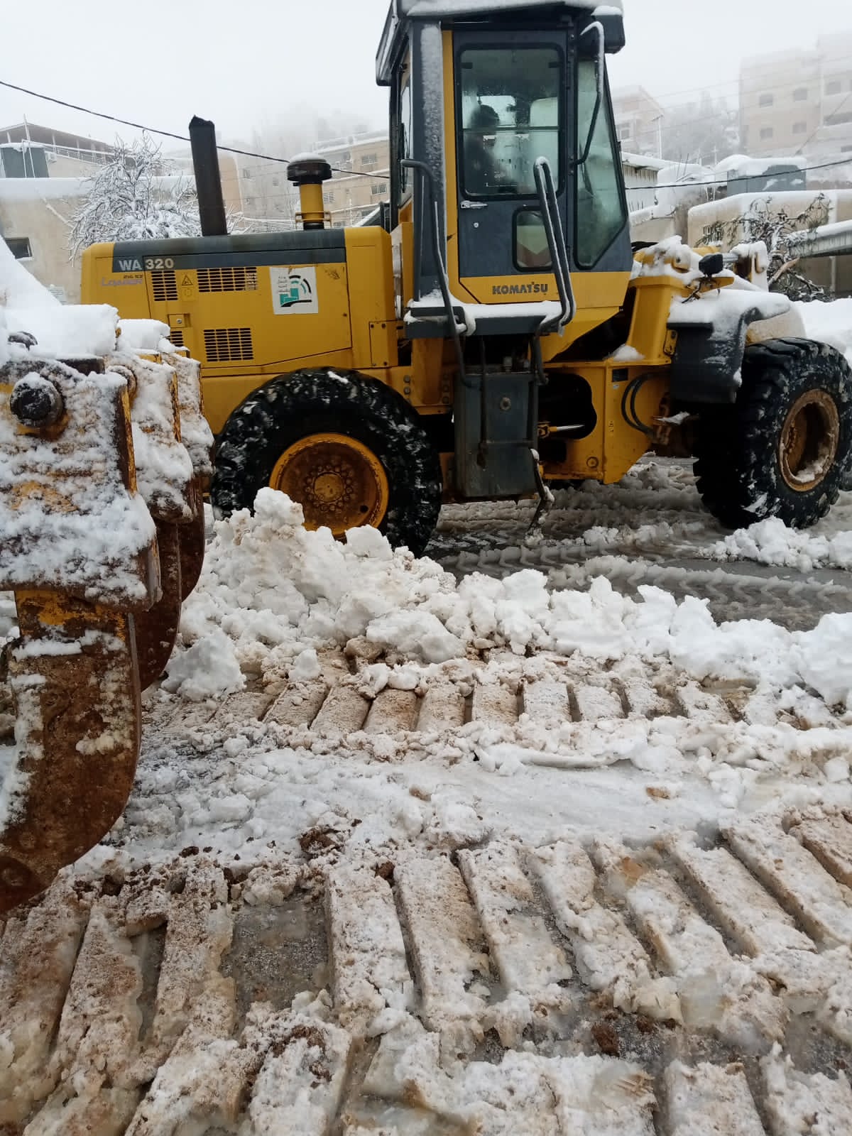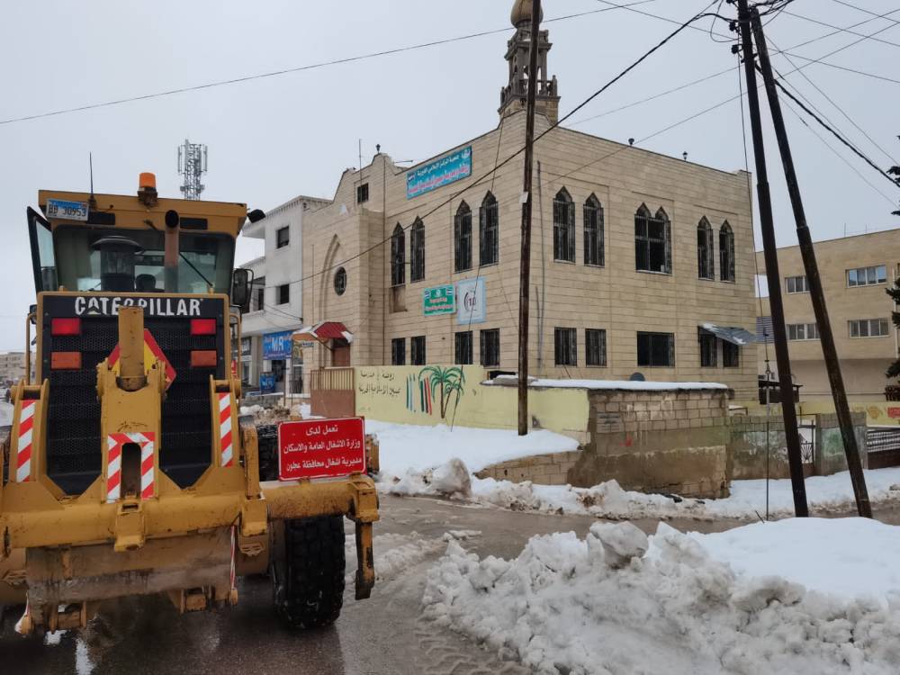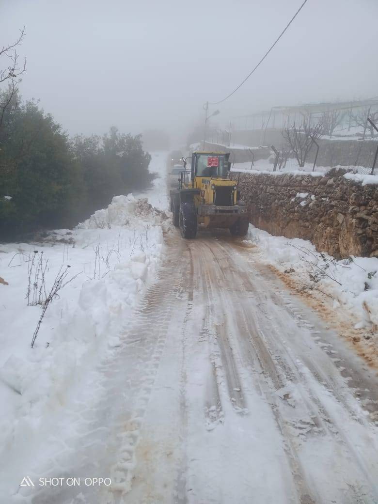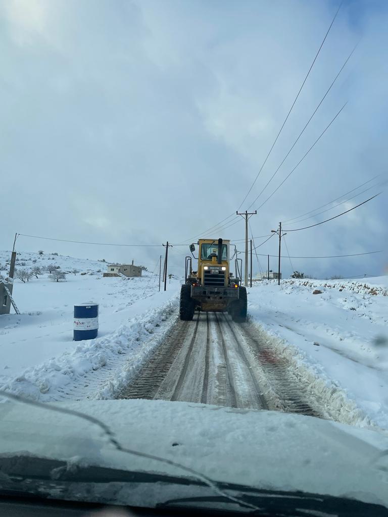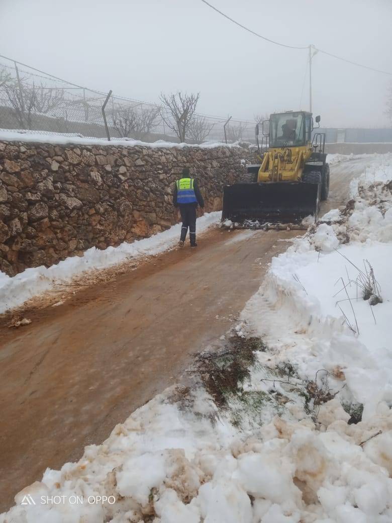 الأشغال: الكوادر الميدانية العاملة في الميدان باشرات العمل على اسناد الشركاء العاملين في الميدان لفتح الطُّرق الفرعية خلال الظُّروف الجويَّة السَّائدة والتي تشهد تراكمات للثلوج