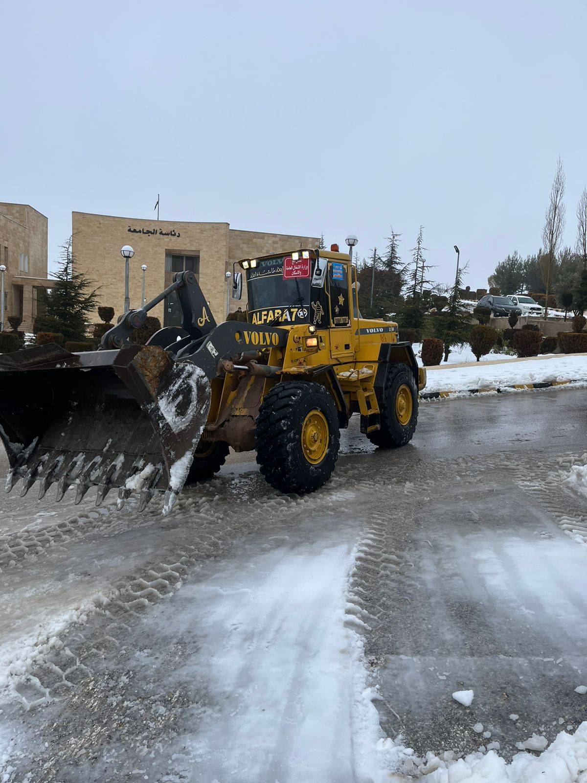 " الفرق الميدانية تعاملت مع تراكم الثلوج على طرق تزامناً مع الهطولات الكثيفة للثلوج مساء الاربعاء، ومنها طريق المطار. وطريق اربد - عمان حيث قامت الآليات المثبت على الطرق بالعمل بشكل فوري على ازالة العوائق لادامة الحركة المرورية على الطرق بالاضافة لتساقط بعض الأشجار على جوانب طرق"، الناطق الرسمي بإسم وزارة الأشغال العامَّة.