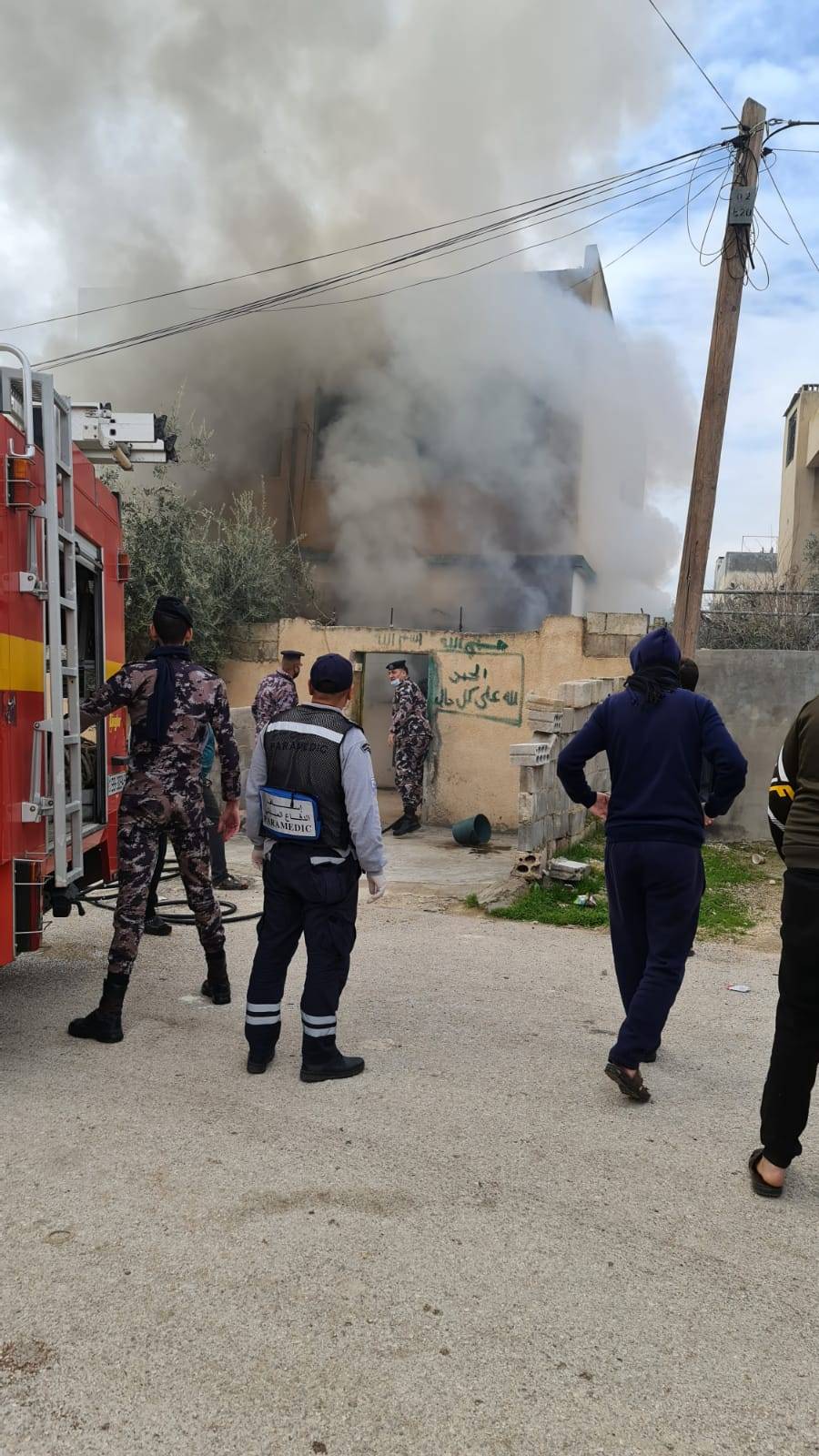 الدفاع المدني يخمد حريق منزل في الشجرة... صور