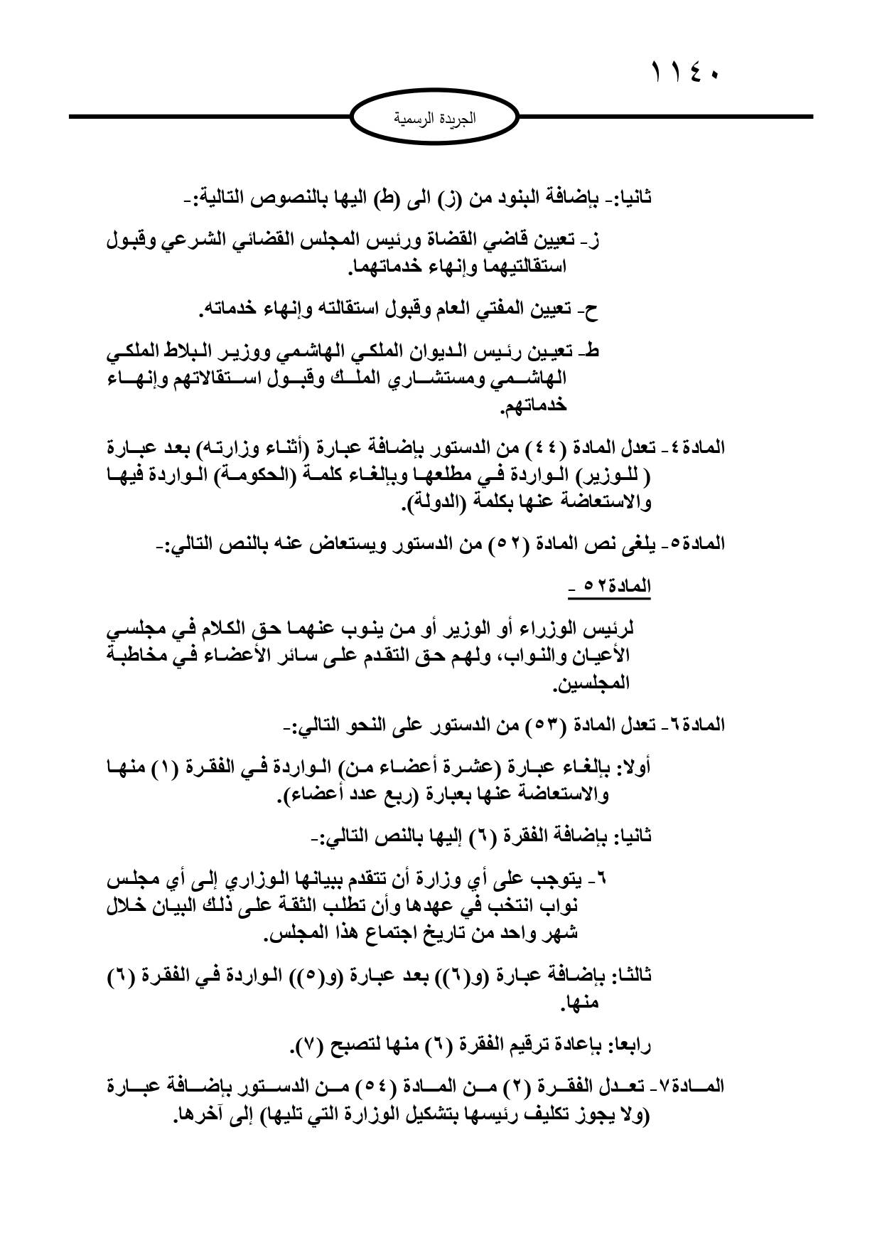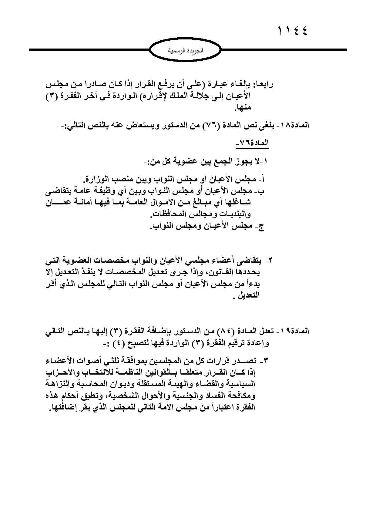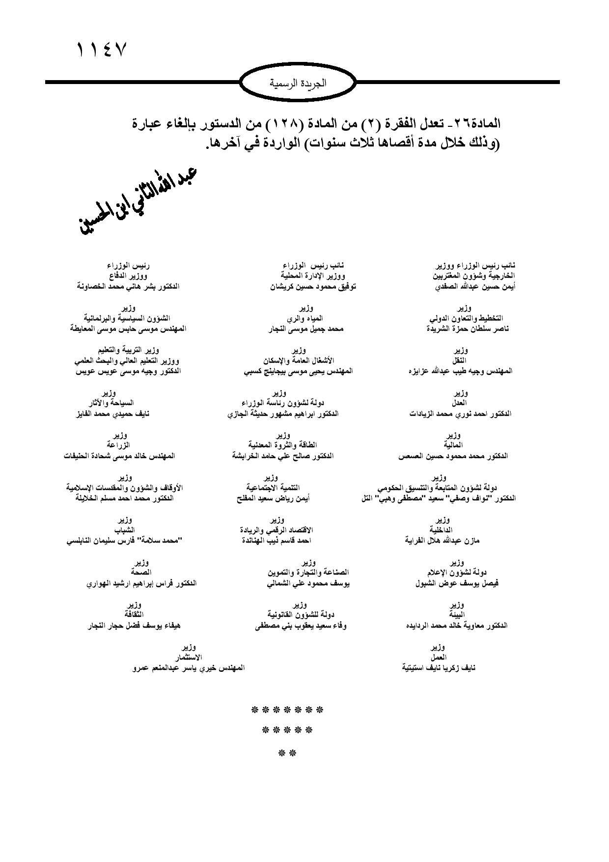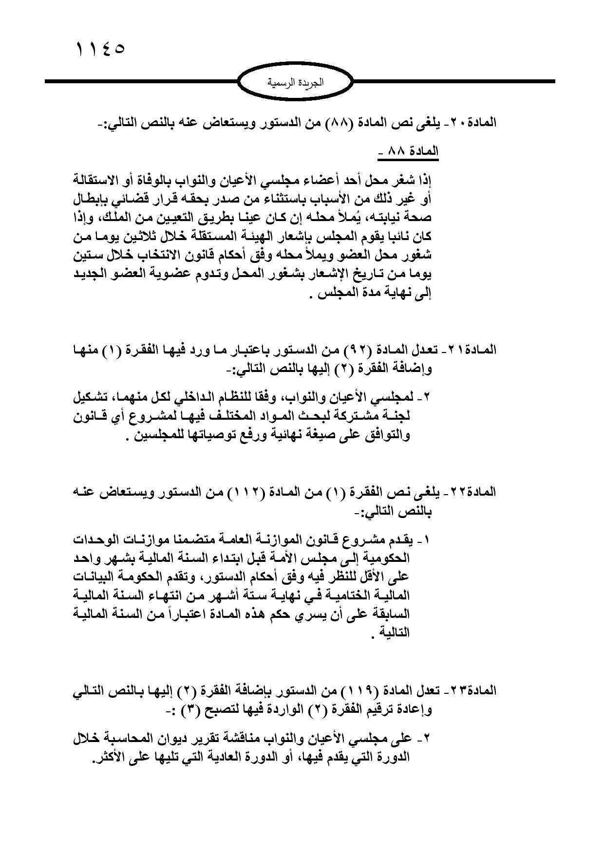 صادق جلالة الملك عبدالله الثاني ابن الحسين على تعديل الدستور الأردني لسنة 2022.