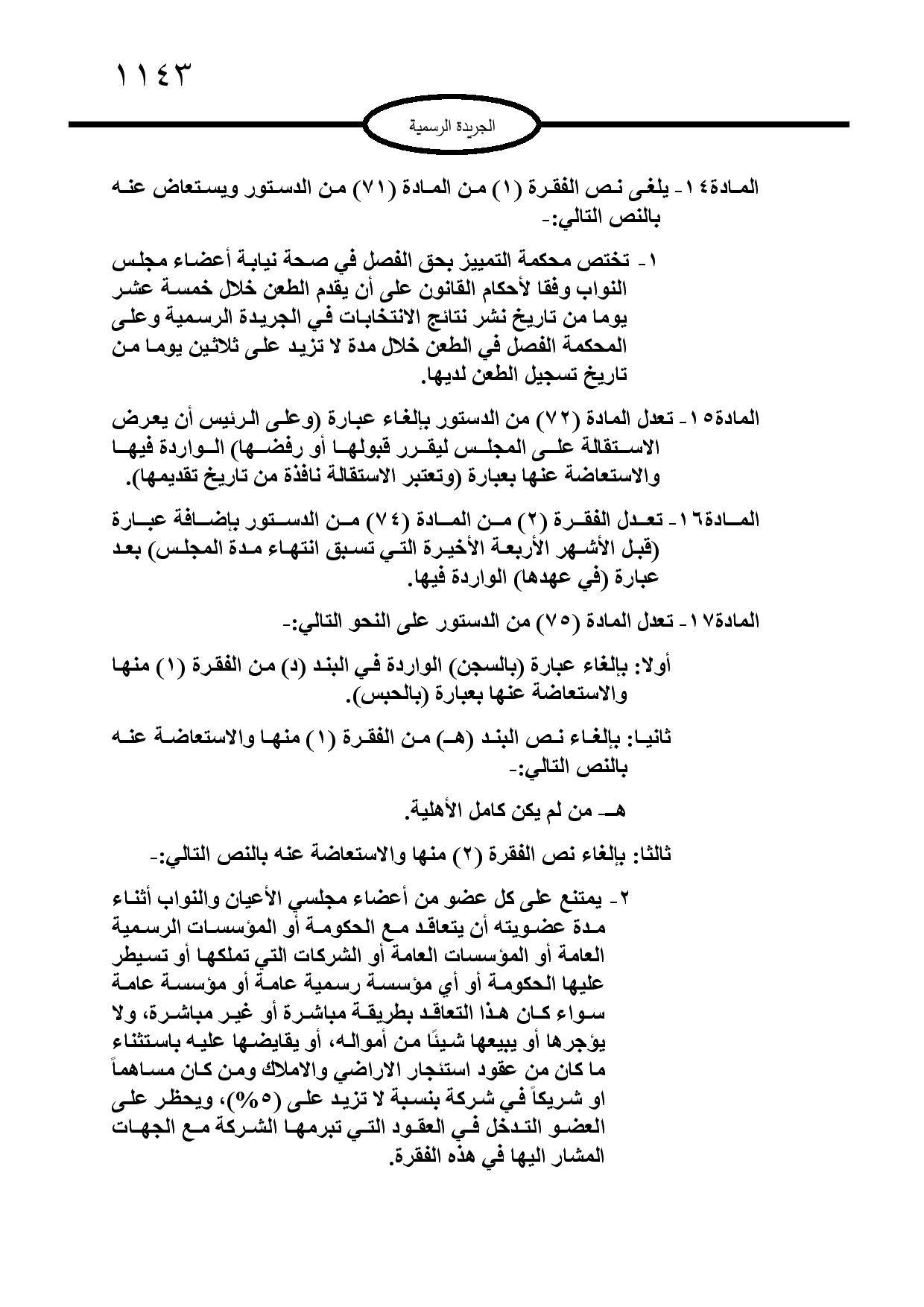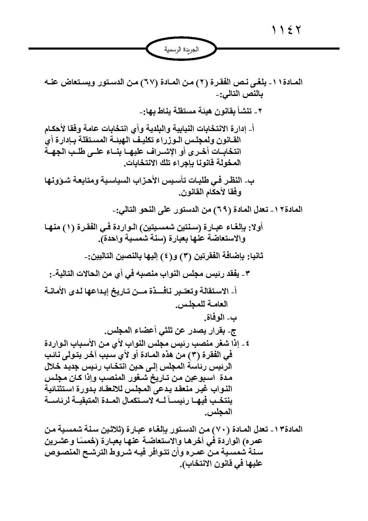 ودخل "تعديل الدستور” حيز التنفيذ بعد صدوره في الجريدة الرسمية لرئاسة الوزراء الاثنين.
