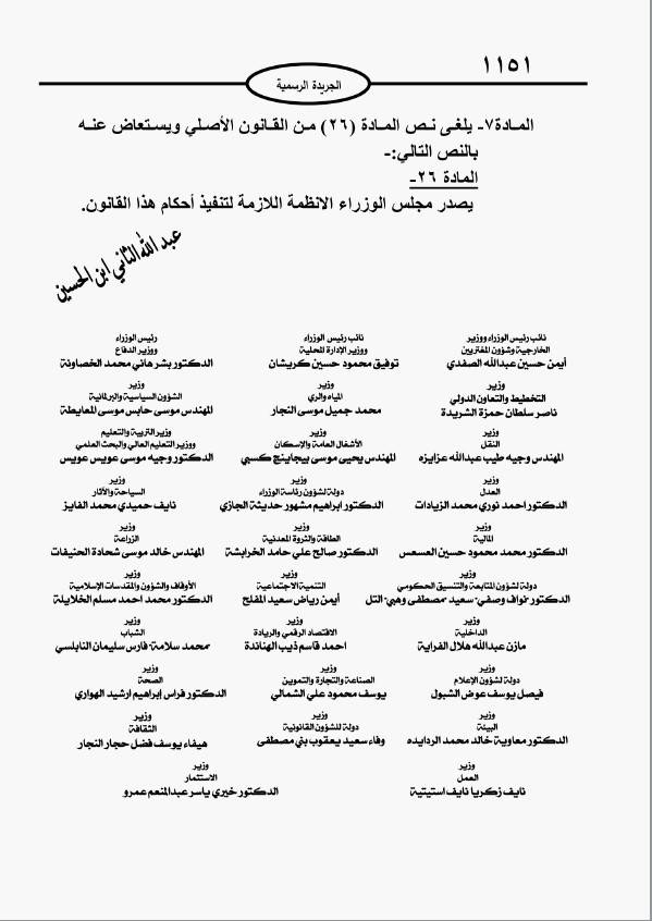 ونشرت اتفاقية إطارية بين حكومة المملكة الأردنية الهاشمية وحكومة الجمهورية التونسية في الميدان الثقافي، واتفاقية بين حكومة المملكة الأردنية الهاشمية و حكومة جمهورية قبرص بشأن تجنب الازدواج الضريبي و منع التهرب من الضرائب فيما يتعلق بالضرائب على الدخل.