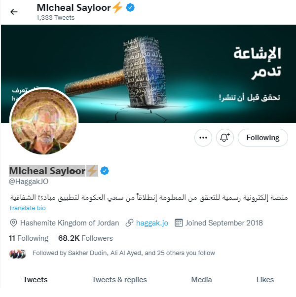 فإن صورة الحساب الرئيسية تغيرت إلى صورة "غريبة”، وكذلك اسم الصفحة الذي تحوّل إلى ” Ꮇlcheal Ꮪaylo̶or”.