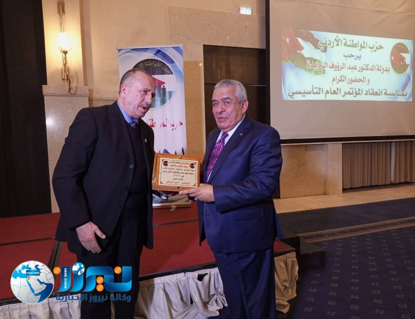 وقدم الأمين العام لحزب المواطنة الأردني الدكتور حسن البرماوي الدروع التكريمية لرئيس الوزراء الاسبق عبد الرؤوف الروابده شاكرا له رعايته لاشهار حزب المواطنة الأردني وكرم البرماوي وزارة الشؤون السياسية والبرلمانية وفندق الموفنبيك.