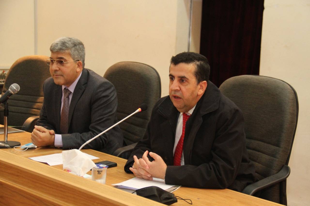 هذا وقدم عميد الكلية الأستاذ الدكتور عبد المطلب الخضراوي شرحاً عن الكلية وابرز احتياجاتها وعدد من الطلبات التي تهم المدرسين والإداريين في الكلية، وثمن الحضور جهود رئيس الجامعة التي يبذلها في إعادة ترتيب الانظمة والتعليمات ووضع معايير واضحة لكافة الإجراءات التي تحكم العمل في الجامعة بشكل واضح واستقرار هذه التعليمات مثل تعليمات الترقية وصرف مكافأة نهاية الخدمة والهياكل الإدارية للكليات والنظر باعتماد الشهادات العلمية للموظفين وغيرها من الإجراءات التي تضمن العدل والمساواة بين جميع افراد أسرة الجامعة.