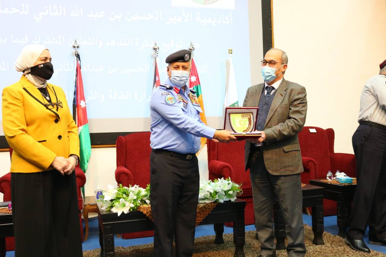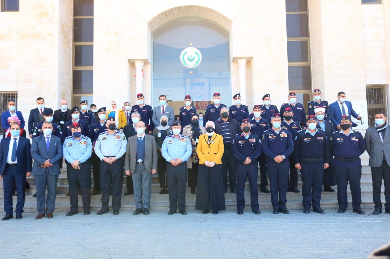 وفي كلمة مساعد مدير الامن العام العميد الدكتور معتصم ابو شتال قام بتهنئة قائد البلاد الملك عبدالله الثاني ابن الحسين المعظم بعيد ميلاده الميمون ورحب بنائب رئيس جامعة البلقاء التطبيقية الدكتور نضال يوس وبجميع المشاركين في هذا الحفل واكد على التشاركية بين مديرية الامن العام وجامعة البلقاء التطبيقية منذ تأسيس الاكاديمية في عام 2009 الذي يعطي الاكاديمية طابعا من التميز والريادة وذلك بتنوع التخصصات التي تقدمها الاكاديمية .