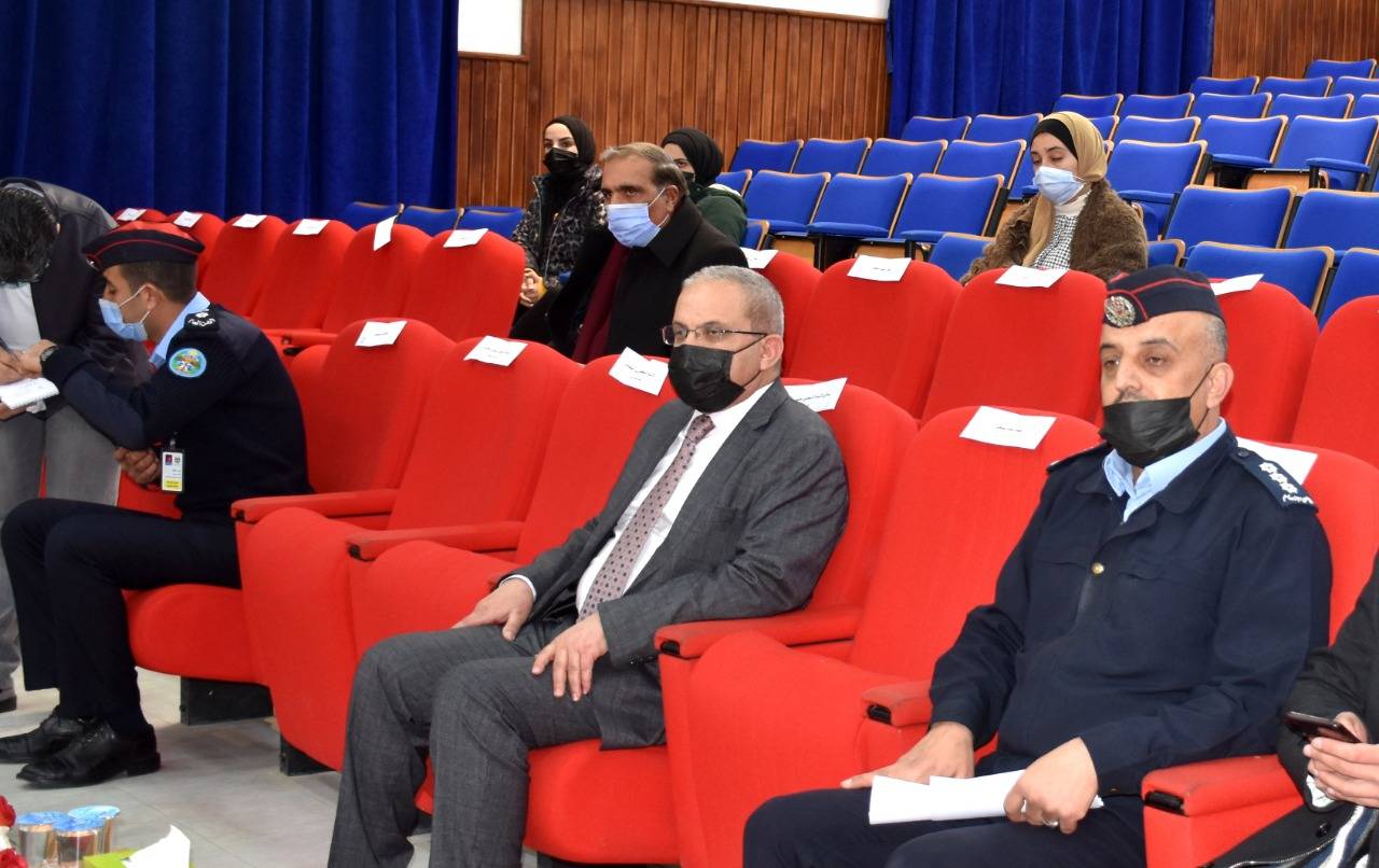 من جانبه شرح النعيمات مفهوم الأمن الشامل والأمن مسؤولية الجميع، وعن مفهوم الجريمة وتعريفها وأقسامها والوقوف صفاً واحداً مع رجال الأمن العام في مواجهة الجريمة والظواهر السلبية التي دخلت على منظومة الجامعات والمدارس كالمخدرات والعنف الجامعي وضرورة إدخال المسؤولية المجتمعية لدى الطلاب.