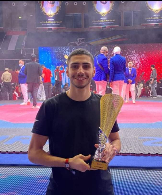 حيث جاءت الميدالية الذهبية بعد فوزه في المباراة النهائية على لاعب منتخب المغرب بنتيجة 16/4، كما فاز بكأس أفضل لاعب عربي لعام 2022.