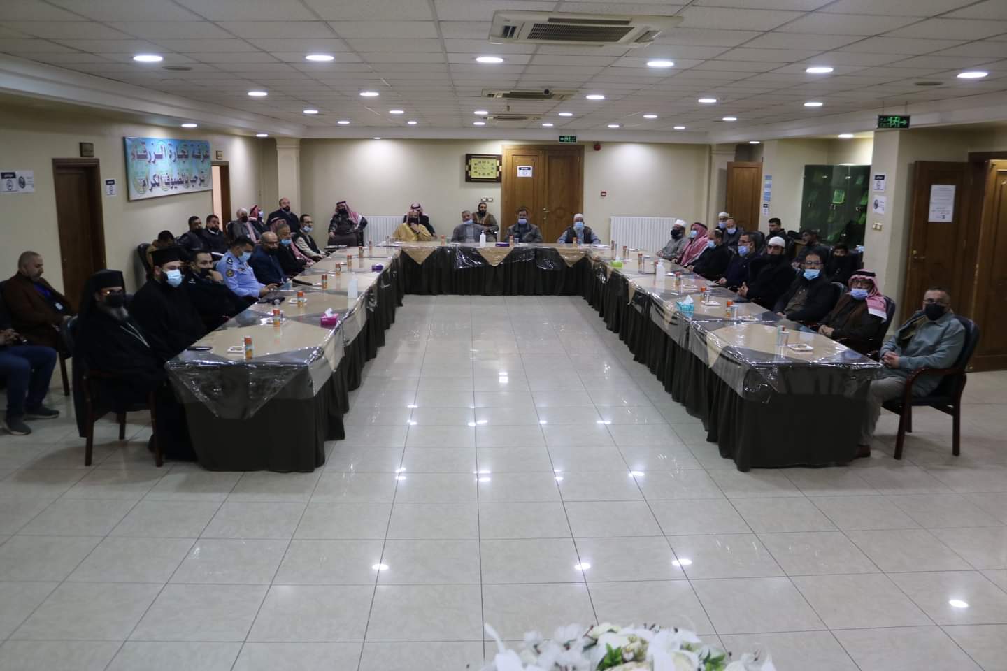 رعى حجازي عساف محافظ الزرقاء احتفالاً بمناسبة أسبوع الوئام بين الأديان الذي أقامته مديرية أوقاف الزرقاء اليوم الاربعاء في غرفة تجارة الزرقاء، وبحضور مساعد مدير شرطة الزرقاء المقدم محمد عبيدات ورئيس مركز أمن الغويرية المقدم أحمد البطاينة، ورئيس مجلس ادارة الغرفة حسين شريم ، و عضو مجلس الادارة فايز اسكاكا، وعميد كلية الأمير الحسن للعلوم الاسلامية الدكتور عاطف القضاة ، والأب مالك أمسيس.
