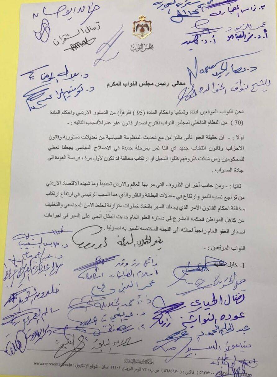عمان - وقع نواب مذكرة يطالبون فيها بإصدار عفو عام.
