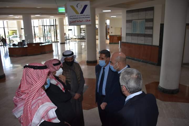 استقبل مدير عام مستشفى الملك المؤسس عبد الله الجامعي الأستاذ الدكتور محمد الغزو سعادة السفير الكويتي لدى الاردن عزيز الديحاني يُرافقه وفد من السفاره للأطمئنان على كافة الرعايا الكويتيين في المستشفى من الناحية الطبية .