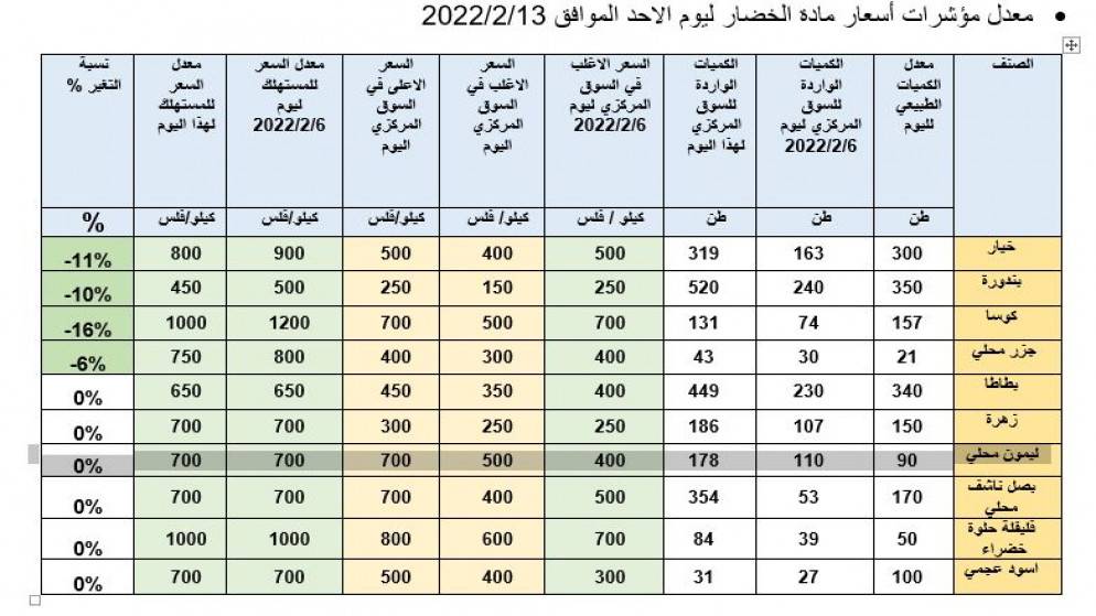 يذكر أن اسعار الخضار والفواكه شهدت ارتفاعا كبيرا خلال الاسبوعين الأخيرين، بسبب تضرر بعض المحاصيل من موجات الصقيع والانجماد وتعطل سلاسل التوريد في بعض الايام نتيجة الظروف الجوية التي كانت سائدة خلال المنخفض الثلجي الأخير، ما أدى الى زيادة الطلب وقلة العرض في الأسواق.