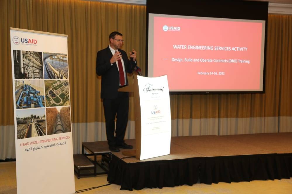 افتتح وزير المياه والري المهندس محمد النجار و مدير مكتب مصادر المياه والبيئة  في الوكالة الامريكية للتنمية الدولية ( USAID) اندرو ماكيم  ورشة " عقود التصميم والتنفيذ والتشغيل ( DESIGN BULD OPERATE  ) بحضور امين عام سلطة المياه المهندس بشار البطاينة ومدير برنامج المياه في الوكالة الأمريكية م. لويس قاقيش  وعدد من مسؤولي قطاع المياه .