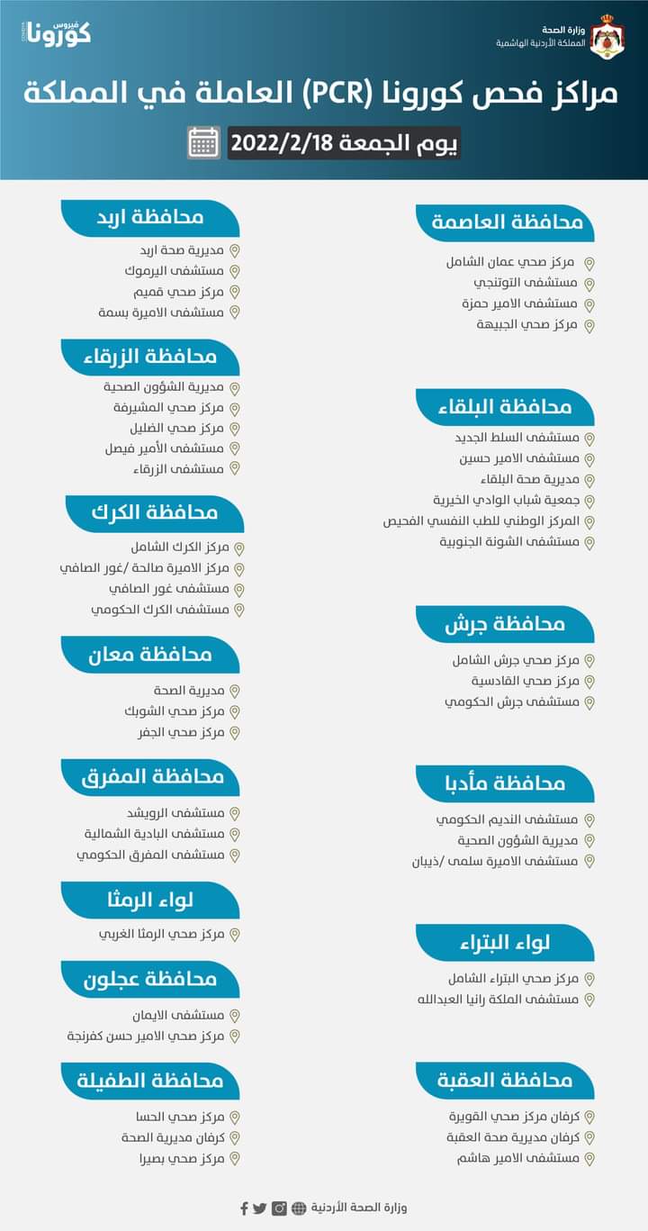 مراكز فحص كورونا (PCR) العاملة يوم الجمعة