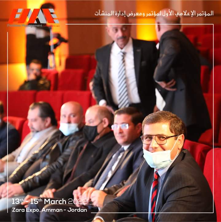 عقد المدير التنفيذي لشركة الأولى لخدمات الحفلات والمؤتمرات احمد شقور في مسرح مبنى زارا للمعارض Zara Expo زارا اكسبو وفندق حياة عمان وبحضور الصحافة المحلية من الصحف والإذاعات والمواقع الاخبارية والقنوات التلفزيونية المؤتمر الصحفي الأول لمؤتمر ومعرض إدارة المنشآت والذي سيعقد خلال الفترة 13 – 2022/3/15 في قاعات زارا اكسبو وفندق حياة عمان.