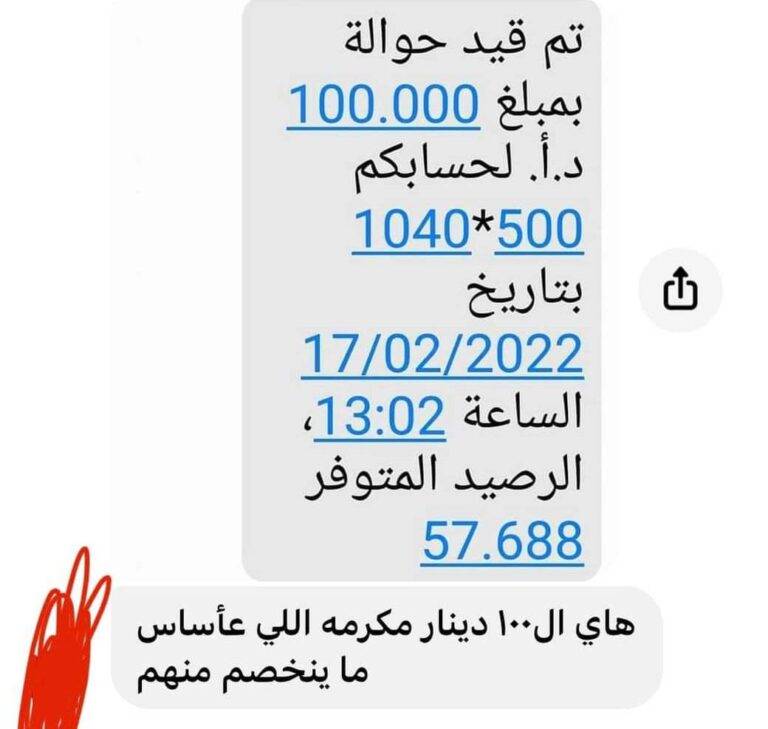 اشتكى أردنيون مستفيدون من المكرمة الملكية بصرف 100 دينار لرفاق السلاح، من لجوء البنوك إلى الاقتطاع منها، رغم تعميم البنك المركزي بعدم اقتطاع أي بنك من المبلغ بصرف النظر عن سبب.