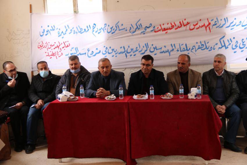 والتقى المهندس الحنيفات خلال جولته مع المهندسين المتدربين في مشروع سد التنور بحضور ممثل نقابة المهندسين الزراعيين علي المصري حيث جرى طرح العديد من التحديات التي تواجه عمليات التدريب للمهندسين الزراعيين في هذا المشروع الذي تم شموله بكافة مستلزمات التدريب الزراعي وجرى زراعة أصناف من الخضار في بيوته البلاستيكية والزجاجية مثمنين جهود وزارة الزراعة في توفير فرص التشغيل والتدريب على الأنماط الزراعية الحديثة ضمن مشروع سد التنور.