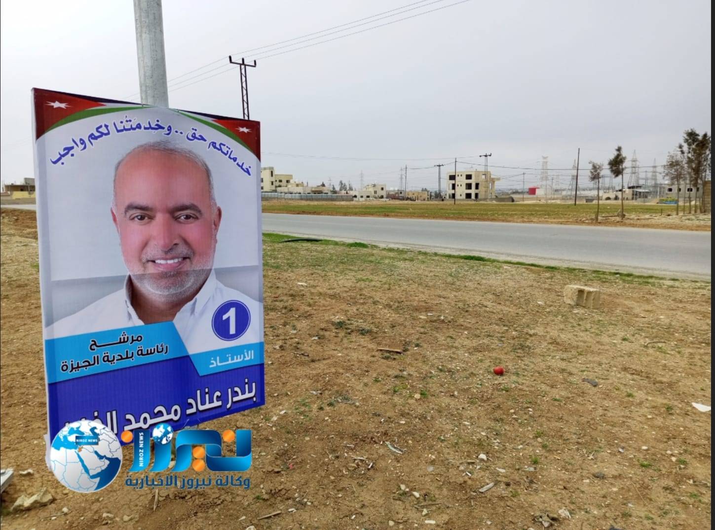 َأكد مرشح رئاسة بلدية الجيزة بندر عناد الفايز أن رؤية جلالة الملك عبدالله الثاني حفظه الله ورعاه تحض على المشاركة في الإنتخابات من أجل خير الوطن وابنائه وهذا الاختيار يترتب عليه مستقبل منطقتك اذا أحسنت الاختيار.