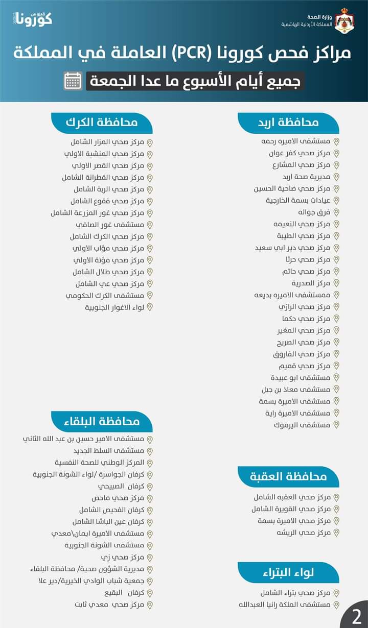 مراكز فحص كورونا (PCR) العاملة جميع أيام الأسبوع ما عدا يوم الجمعة في المملكة حسب التالي: