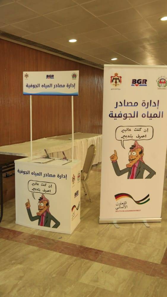 مندوبا عن وزير المياه والري المهندس محمد النجار رعى امين عام وزارة المياه والري الدكتور جهاد المحاميد ومديرة مشروع (BGR) المعهد الفيدرالي الالماني لعلوم الارض ربيكا بهلز ومساعد امين عام سلطة المياه لشؤون الاعلام عمر سلامة وعدد خبراء المياه من القطاعين العام والخاص ومسؤولي قطاع المياه اليوم الاثنين الموافق 21 شباط اطلاق حملة وزارة المياه والري التوعوية لحماية مصادر المياه الجوفية ( إن كنت عالبير، اصرف بتدبير) في المركز الثقافي الملكي ضمن برنامج التعاون الفني لمشروع ادارة مصادر المياه الجوفية في الاردن بين وزارة المياه والري والمعهد الفيدرالي الالماني لعلوم الارض BGR والممول من قبل الوزارة الألمانية للتعاون الاقتصادي والتنميةBMZ ، لتعزيز ثقافة الحصاد المائي والمحافظة على المياه ورفع الوعي بواقع المياه الجوفية .
