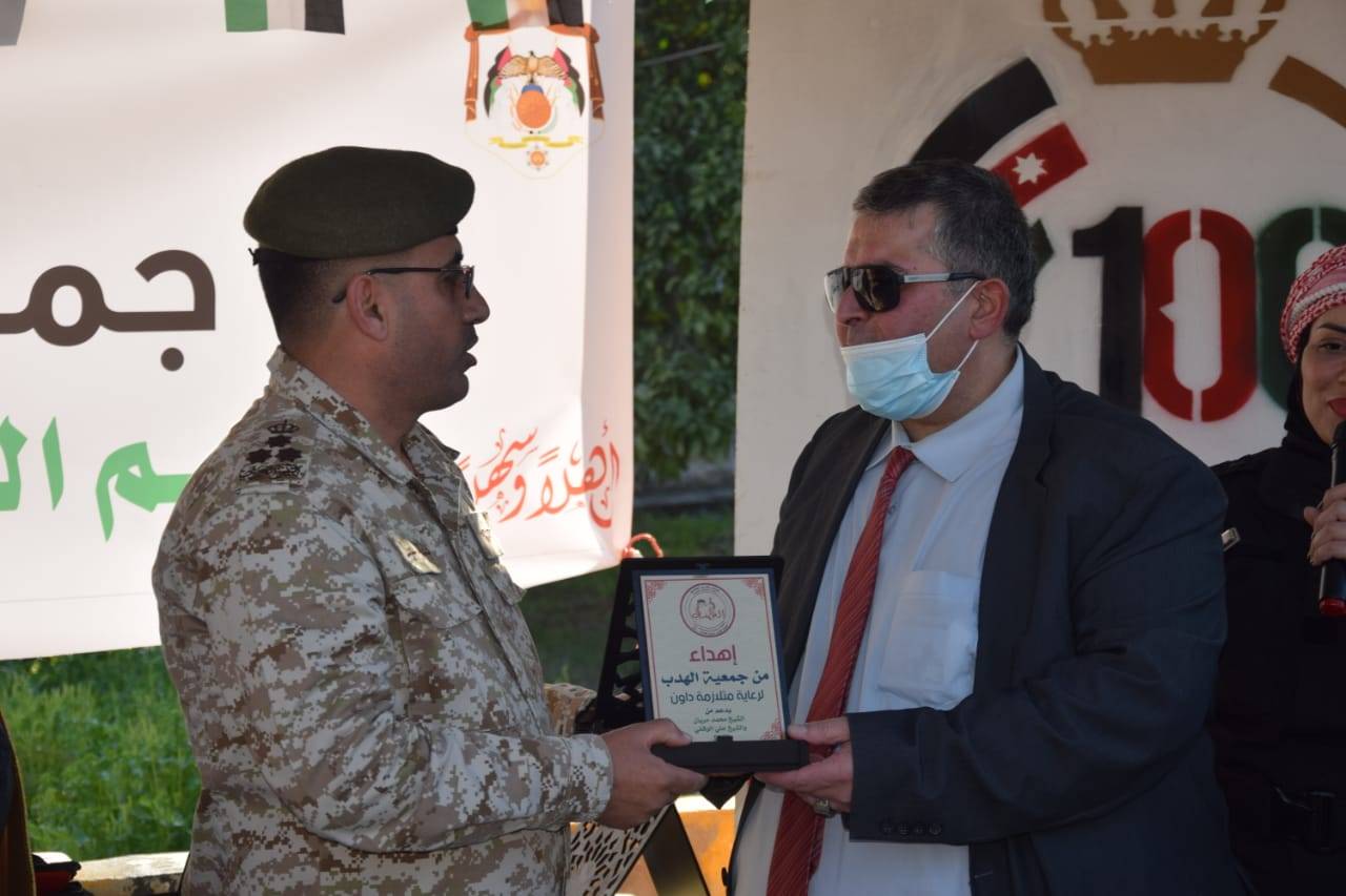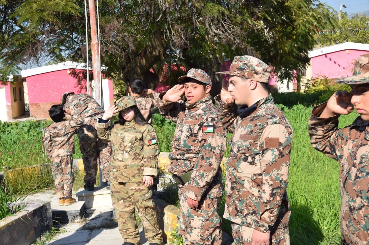 اقامت جمعية الهدب لرعاية متلازمة داون بمناسبة عيد ميلاد القائد المخيم العسكري السادس تحت رعاية قائد لواء اليرموك العميد عبدالسلام المومني اقامت جمعية الهدب لرعاية متلازمة داون بمناسبة عيد ميلاد القائد المخيم العسكري السادس وبالتعاون مع وزارة التربية والتعليم حيث تدرب نشامى متلازمة داون على يد المدرب العسكري ياسين الازايده والمدرب الكشفي محمد طراونه وقاموا بزيارة الباقورة المستعادة..وقدموا أجمل الاهازيج فرحا بعيد ميلاد جلالة الملك