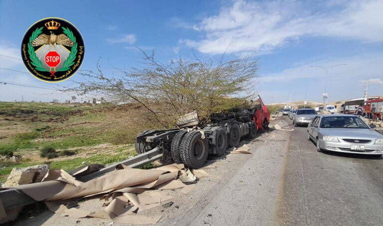 توفي شخص وأصيب 8 آخرون، اليوم الأحد، إثر حادث تصادم وتدهور بين 4 مركبات شحن و5 مركبات صغيرة على طريق العدسية / ناعور.