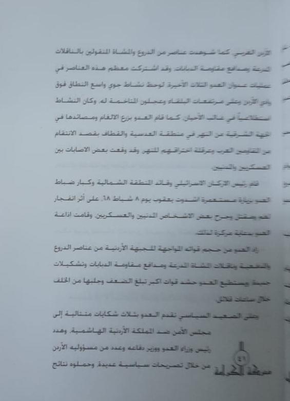 ...وقد ورد في هذه الوثائق الرسمية الأردنية ان الاسرائليين استخدموا في الهحوم الطائرات والمدفعية والدبابات .
