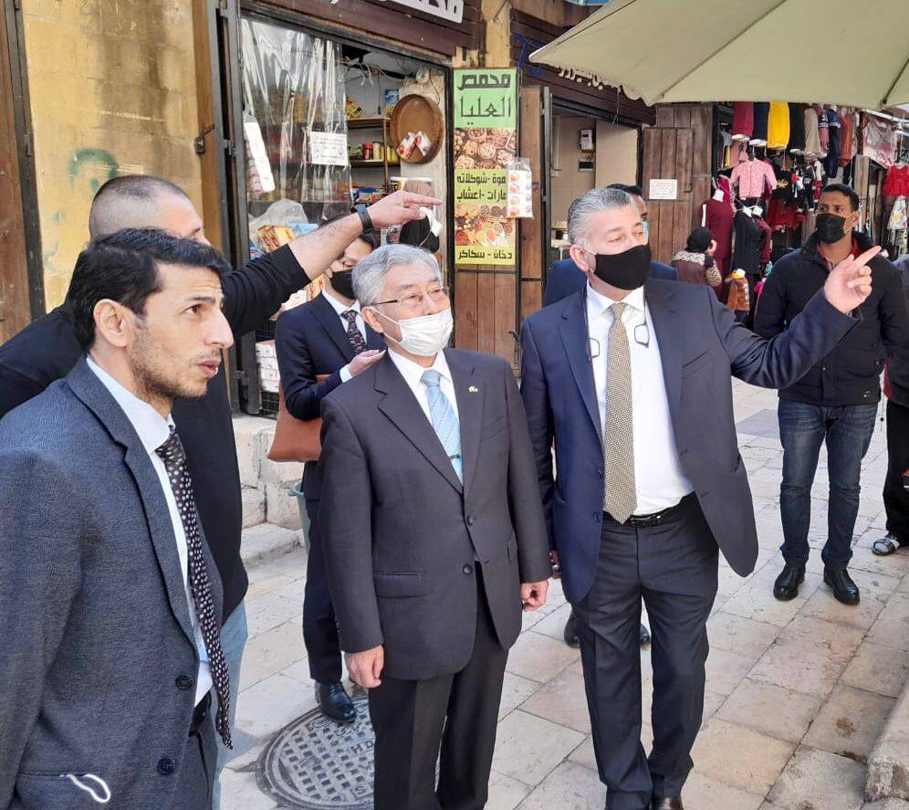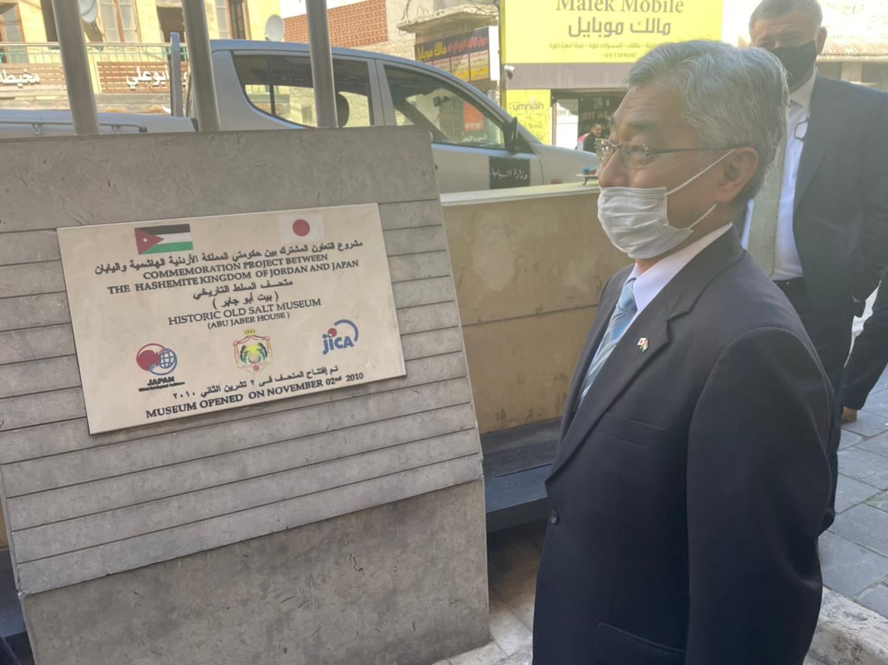 قام السفير الياباني المعتمد لدى المملكة السيد شيمازاكي كاورو ، بزيارة صباح يوم أمس الاثنين إلى مدينة السلط، إطلع خلالها على المشاريع التنموية التي مولتها الحكومة اليابانية عبر الوكالة اليابانية الإنماء (JICA)، حيث كان في استقباله كل من عطوفة محافظ البلقاء الدكتور فراس ابو قاعود، وعطوفة الدكتور محمد قطيشات رئيس الجامعة العربية المفتوحة في الاردن، وسعادة النائب عبد الحليم الحمود والسيد خلدون خريسات مدير مؤسسة إعمار السلط، وجال سعادة السفير ومستقبليه خلال الزيارة في متحف السلط التاريخي الذي أعيد ترميمه بدعم من الوكالة اليابانية للانماء، واطلع أيضاً على الإنجازات التي تحققت في مشروع تطوير المسارات والمطلات السياحية بدعم سخي من الحكومة اليابانية.