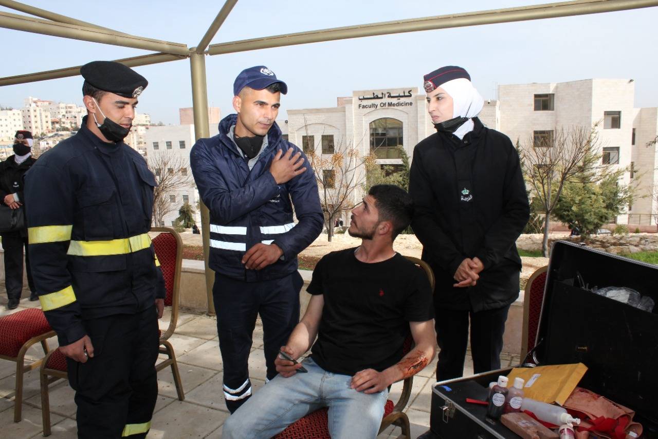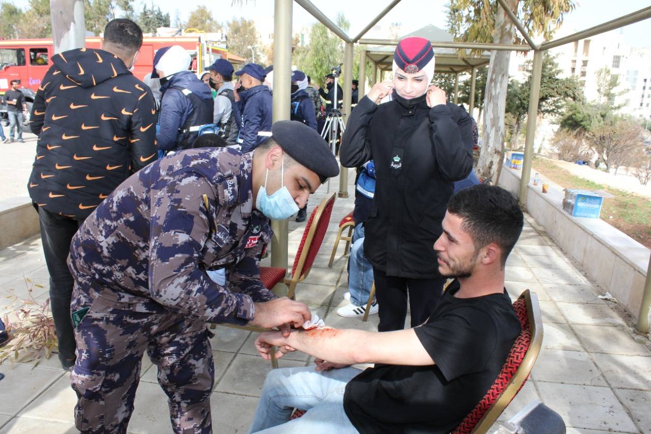 وتضمن الاحتفال معرضا مصغرا لآليات الدفاع المدني داخل الجامعة وكما تضمن تقديم خدمة قياس الضغط والسكري لرواد المعرض بالإضافة إلى محاضرات تعريفية بدور جهاز الدفاع المدني وتدريبية للطلبة في عمليات الانعاش الرئوي ومعالجة الكسور والجروح وغيرها وتوزيع منشورات مختلفة، بهدف إبراز دور مديرية الامن العام بالمحافظة على سلامة المواطنين وممتلكاتهم والتعريف بمواضيع السلامة العامة والتدريب على أعمال الدفاع المدني بالمحافظة على سلامة المواطنين وممتلكاتهم.