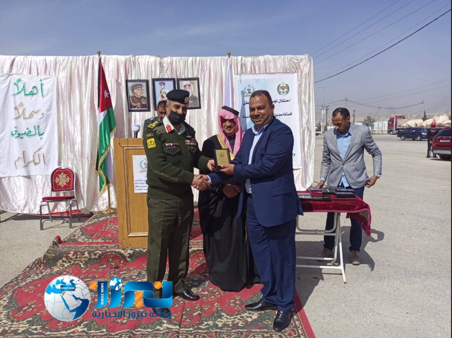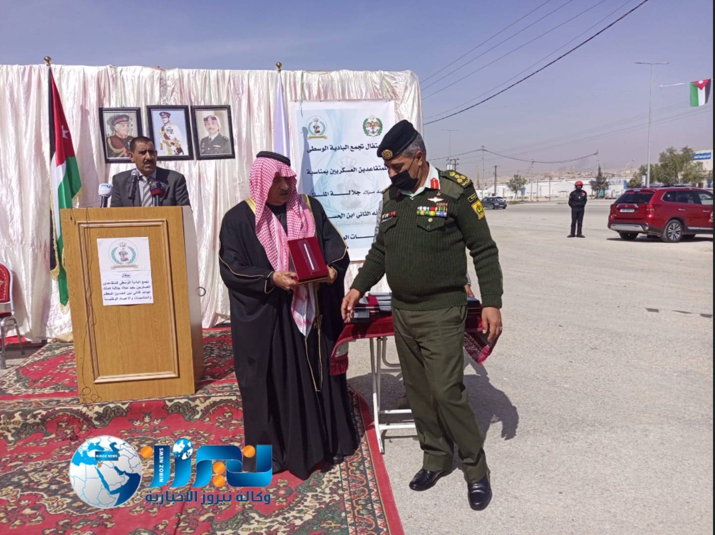 وفي نهاية الاحتفال كرّم رئيس تجمع البادية الوسطى للمتقاعدين العسكريين اللواء الركن المتقاعد حاكم حديثه الخريشا ذوي الشهداء الذين ضحوا بدمائهم من اجل أمن واستقرار الأردن .