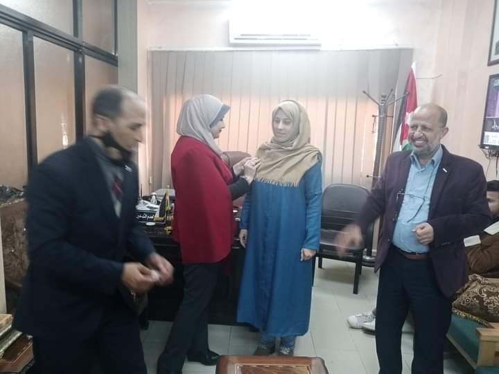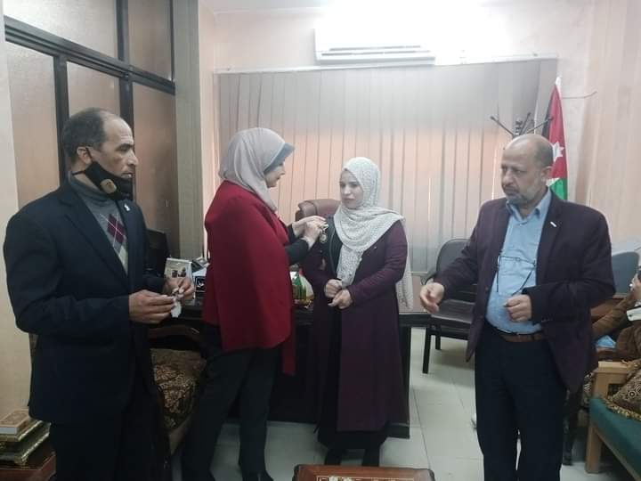 كرم مدير التربية والتعليم الدكتور علي المزاودة في مكتبه اليوم الخميس عدد من معلمات وطالبات مدرسة ثغرة الجب الثانوية للبنات بمناسبة يوم المرأة العالمي بحضور مدير الشؤون الإدارية والمالية لينا الزعبي ، ورئيس قسم النشاطات جهاد الرويلي.