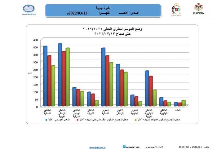 والرسم البياني يبين وضع الموسم المطري في مناطق المملكة حتى صباح يوم 13 اذار2022: