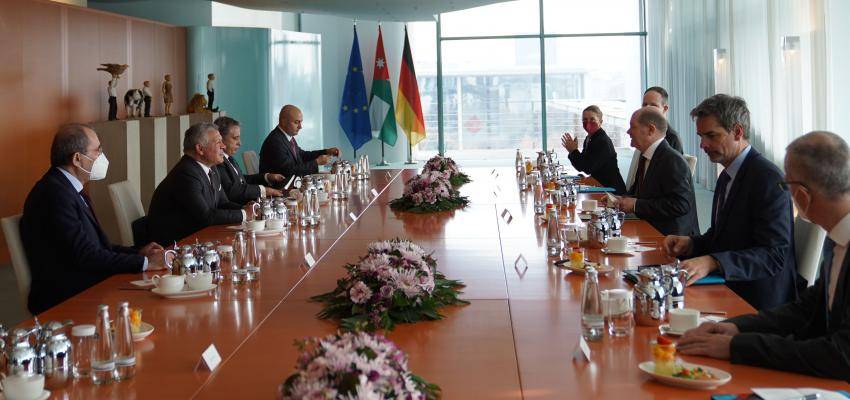: اجرى جلالة الملك عبدالله الثاني اليوم الثلاثاء مباحثات مع المستشار الألماني أولاف شولتس في مقر المستشارية الألمانية في برلين.