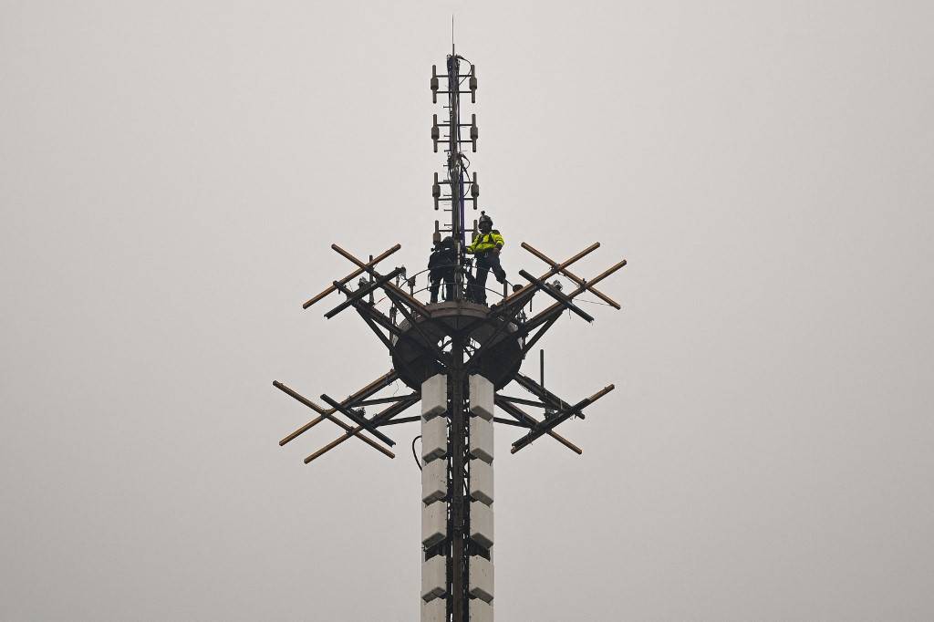 واستغرقت العملية التي تطلبت موافقة مجلس بلدية باريس ووزارة الثقافة والشرطة، حوالي خمس عشرة دقيقة، وهو الوقت الذي قامت فيه المروحية بتثبيت الهوائي في الأعلى حيث كان أحد الفنيين ينتظر لنصبه.