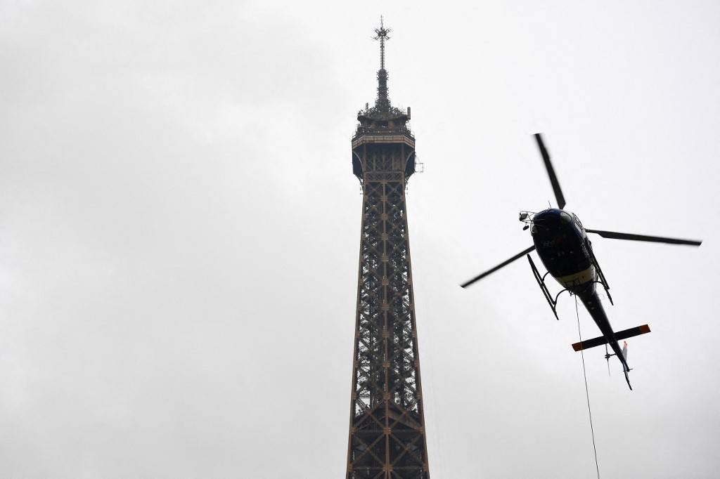 وهذه المرة الأولى التي يتم فيها تركيب معدات جديدة بواسطة طوافة على برج إيفل، وفق الشركة المشغلة للبرج (Sete).