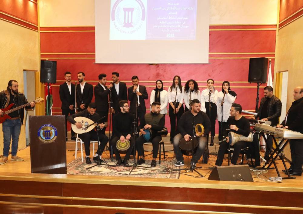 ضمن احتفالات جامعة فيلادلفيا بمناسبة عيد ميلاد جلالة الملك عبدالله الثاني بن الحسين حفظه الله ورعاه ويوم الوفاء والبيعة وذكرى يوم الكرامة، رعى الأستاذ الدكتور خالد السرطاوي رئيس الجامعة بالوكالة مهرجان الأغنية الوطنية التاسع عشر للجامعات الأردنية الذي تنظمه عمادة شؤون الطلبة بمشاركة فرق كورال كل من جامعات (فيلادلفيا، اليرموك، إربد الأهلية، الزرقاء الخاصة، الشرق الأوسط).