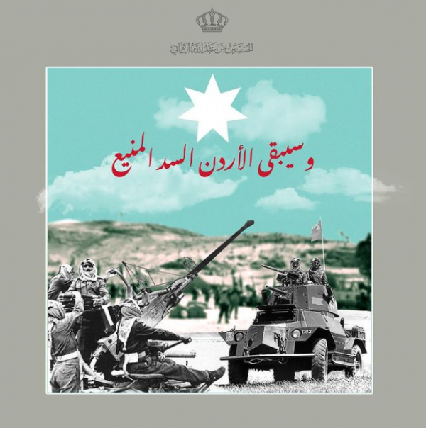 وأدرج سموه صورة كتب عليها، "سيبقى الأردن السد المنيع".